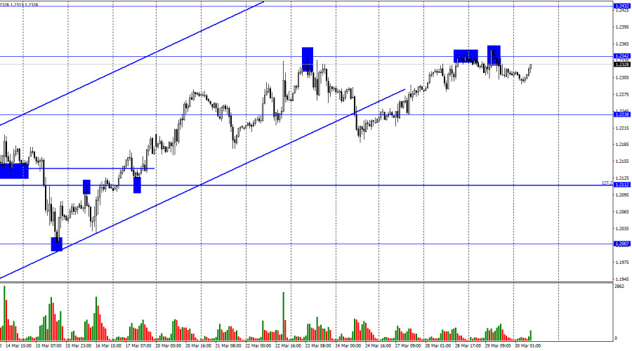 GBP/USD. 30 марта. Британец активнее европейца, но ненамногоИнстаФорекс - Instaforex, 2 года назад Добрый день, уважаемые трейдеры! На часовом графике пара GBP/USD в среду выполнила еще один отбой от уровня 1,2342 и минимальное падение. Сегодня выполнен возврат к уровню 1,2342. Новый отбой от этого уровня опять позволит рассчитывать трейдерам на разворот в пользу валюты США и некоторое падение в направлении 1,2238. Закрепление курса пары над 1,2342 (что более вероятно) повысит шансы на продолжение роста в направлении следующего уровня 1,2432. Информационный фон для пары фунт-доллар на этой неделе отсутствует. В понедельник и вторник состоялось по одному выступлению губернатора Банка Англии Бейли, но рынок достаточно скромно отреагировал на заявления о сохранении процесса ужесточения ДКП. Никакой новости в этом не было, потому что с текущим уровнем инфляции британский регулятор не может поступить иначе. Я бы даже сказал, что ему нужно сохранять текущие темпы повышения процентной ставки, но тот же Бейли заявил, что ставка не должна превысить уровень 2008 года. А раз она не должна его превысить с текущим значением 4,25%, то на следующих заседаниях можно ожидать повышения по 0,25%, не более. Последнее повышение ставки ФРС некоторые эксперты назвали «голубиным». Если ужесточение ДКП можно считать «голубиным», то Банк Англии тоже близок к такому вот «голубиному» повышению. Иными словами, последнему. Таким образом, британец, который все еще показывает рост, может в скором времени прекратить его. Безусловно, даже до следующего заседания Банка Англии времени еще предостаточно, фунт может успеть значительно вырасти. Но в целом на обоих графиках начинают появляться сигналы на продажу. Единственным отчетом на этой неделе из Великобритании будет ВВП в четвертом квартале. И выйдет он лишь завтра. Низкая активность трейдеров может сохраняться до конца недели. На 4-часовом графике пара выполнила разворот в пользу валюты Великобритании и возобновила процесс роста в направлении уровня 1,2441. Образовалась уже третья подряд «медвежья» дивергенция у индикатора MACD, которая вновь позволяет рассчитывать на разворот в пользу валюты США и некоторое падение котировок. В совокупности с вероятным отбоем от 1,2342 на часовом графике мы можем получить два сильных сигнала на продажу. Отчет Commitments of Traders (COT): Настроение категории трейдеров «Non-commercial» за последнюю отчетную неделю практически не изменилось. Количество Long-контрактов на руках спекулянтов сократилось на 3682 единицы, а количество Short – на 498. Общее настроение крупных игроков остается прежним – «медвежьим», а количество Short-контрактов по-прежнему превышает количество Long-контрактов. За последние несколько месяцев ситуация перманентно менялась в сторону британца, но сейчас разница между количеством Long и Short на руках спекулянтов все еще остается существенной. Таким образом, перспективы фунта улучшаются, но сам британец в последние несколько месяцев и не растет, и не падает. На 4-часовом графике состоялся выход за пределы нисходящего коридора, и этот момент может поддерживать фунт. Однако замечу, что сейчас многие факторы противоречат друг другу, а информационный фон оказывает не большую поддержку фунту. Календарь новостей для США и Великобритании: США – ВВП за четвертый квартал(12-30 UTC). США – Число первичных заявок на получение посо