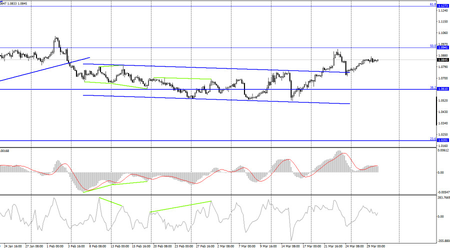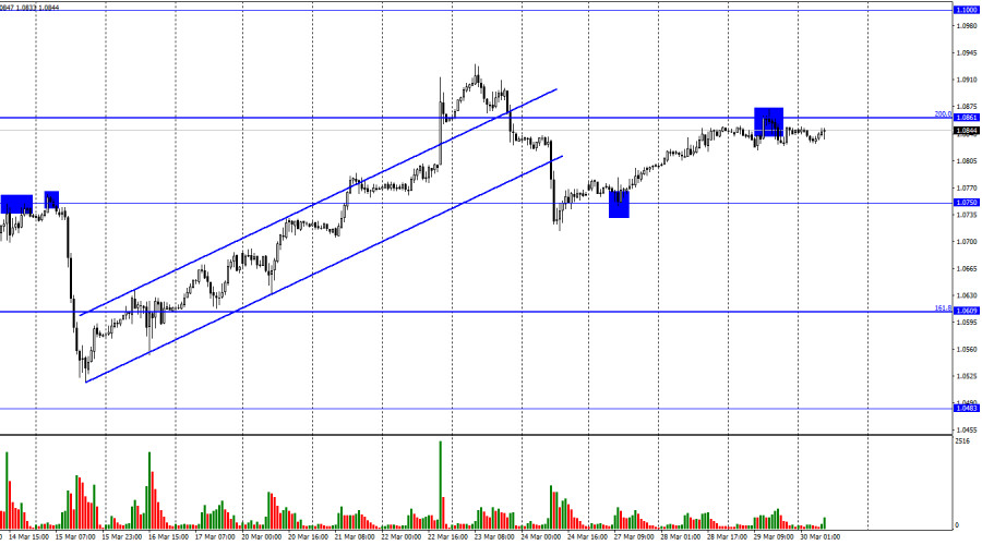 EUR/USD. 30 марта. Рынок стоит на местеИнстаФорекс - Instaforex, 2 года назад Добрый день, уважаемые трейдеры! Пара EUR/USD в среду завершила процесс роста к уровню коррекции 200,0%, 1,0861. Отбой от этого уровня сработал в пользу американской валюты, но падение в направлении уровня 1,0750 пока не началось. Активность трейдеров в последние дни очень низкая. Если в начале недели наблюдался рост, то вчера и сегодня пара движется горизонтально. Закрепление над уровнем 1,0861 повысит шансы на продолжение роста в направлении следующего уровня 1,1000. Информационный фон на этой неделе просто отсутствует. Первый более или менее важный отчет выйдет лишь сегодня. Отчет по инфляции в Германии ожидается со значительным снижением, что может обрадовать трейдеров-медведей, которые продают пару (то есть покупают доллар США). Если инфляция покажет значительное снижение после роста месяцем ранее, это будет означать, что ЕЦБ может ослабить свой «ястребиный» настрой на ближайшем заседании. Но в то же время отчет по инфляции в Германии – это отчет по инфляции лишь в одной стране Евросоюза. Совсем не обязательно, что в пятницу европейский индекс потребительских цен тоже покажет сильное замедление. Я вообще сомневаюсь в том, что инфляция ни с того, ни с сего вдруг упадет за один месяц более чем на 1%. Поэтому я считаю, что слишком большое значение придавать ему не стоит. Безусловно, трейдеры вряд ли оставят без внимания эти данные, хотя бы потому, что на этой неделе с информационным фоном большие проблемы. Во второй половине дня выйдет отчет по ВВП в США за четвертый квартал. По этому отчету я могу сказать примерно то же самое. Отчет важный, но не стоит его переоценивать. Американская экономика находится на ходу, в этом нет ни у кого сомнений, но трейдеров сейчас больше волнует ставка FOMC, которая может перестать расти уже в мае. В это же время ставка ЕЦБ будет продолжать увеличиваться. Таким образом, у евровалюты пока есть один весомый козырь перед долларом. На 4-часовом графике пара выполнила закрепление над боковым коридором, что позволяет рассчитывать на продолжение роста. Однако над уровнем коррекции 50,0%, 1,0941 выполнить закрепление не удалось (правда, и отбоя от него не случилось). Таким образом, падение котировок может быть возобновлено в любой момент в направлении коррекционного уровня 38,2%, 1,0610. Назревающих дивергенций сегодня не наблюдается ни у одного индикатора. Отчет Commitments of Traders (COT):