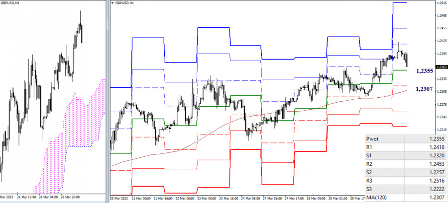 EUR/USD и GBP/USD 31 марта – технический анализ ситуацииИнстаФорекс - Instaforex, 2 года назад EUR/USD Старшие таймфреймы Вчера игроки на повышение продолжили подъём и приступили к очередному тестированию месячного среднесрочного тренда (1,0903). Результат взаимодействия может повлиять на дальнейшие варианты развития ситуации. Игрокам на повышение нужен пробой сопротивления, после чего они смогут нацелить свои интересы на обновление февральского максимального экстремума (1,1033), тем самым полностью нивелировав медвежьи настроения и достижения февраля. Если же пробой 1,0903 вновь не состоится, и будет сформирован новый отбой, то коррекционное снижение может быть более результативным. В поддержку медведей в случае отбоя может выступить и наметившаяся дивергенция по Чинкоу на дневном тайме. Среди ближайших уровней поддержек сегодня можно отметить 1,0817 (дневной краткосрочный тренд) – 1,0775-58 (дневное облако + недельный краткосрочный тренд). Н4 – Н1 На младших временных интервалах основное преимущество в настоящий момент принадлежит игрокам на повышение. Их ориентирами для продолжения подъёма внутри дня служат классические Пивот уровни (1,0947 – 1,0988 – 1,1050). Ключевые уровни младших таймов сегодня формируют рубежи для развития коррекционного снижения, располагаясь на 1,0885 (центральный Пивот уровень дня) и 1,0827 (недельная долгосрочная тенденция). Закрепление под ключевыми уровнями будет влиять на предпочтения рынка и способно изменить действующий баланс сил в пользу усиления медвежьих настроений. Дополнительными ориентирами для снижения внутри дня далее могут стать поддержки классических Пивот уровней (1,0782 – 1,0741). *** GBP/USD Старшие таймфреймы Опираясь на ближайшие текущие поддержки 1,2300 – 1,2302 (дневной краткосрочный тренд + месячный среднесрочный тренд), игроки на повышение продолжают подъём. Основным повышательным ориентиром на данном участке служит максимальный экстремум 1,2447. Закрепление выше откроет перед игроками на повышение новые перспективы. В целом в последний день марта можно сказать, что фунт провёл март в зоне консолидации последних нескольких месяцев. При этом если верхняя месячная тень получится минимальной, то будет наблюдаться некоторый бычий потенциал и преимущество, так как пара сейчас находится в районе верхних границ зоны консолидации. Н4 – Н1 На младших таймах сегодня с утра уже протестировано первое сопротивление классических Пивот уровней (1,2418). Следующие повышательные ориентиры сейчас расположены на 1,2453 (R2) – 1,2516(R3). Тестирование (1,2418) завершилось формированием отбоя, в результате развивается нисходящая коррекция, её ключевые ориентиры сегодня находятся на 1,2355 (центральный Пивот уровень дня) и 1,2307 (недельная долгосрочная тенденция). Закрепление ниже и разворот мувинга способны изменить действующий баланс сил младших таймфреймов. Далее ориентирами для снижения внутри дня выступят оставшиеся поддержки классических Пивот уровней 1,2257 (S2) – 1,2222 (S3). *** При техническом анализе ситуации использованы: старшие таймфреймы – Ichimoku Kinko Hyo (9.26.52) + уровни Фибо Киджун; младшие таймфреймы – Н1 – Pivot Points (классические) + Moving Avarage 120 (недельная долгосрочная тенденция). Материал предоставлен компанией InstaForex - www.instaforex.com |