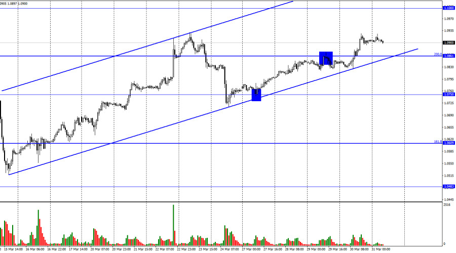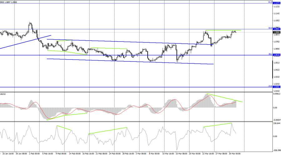 EUR/USD. 31 марта. Инфляция в Евросоюзе падает, евро – растетИнстаФорекс - Instaforex, 2 года назад Добрый день, уважаемые трейдеры! Пара EUR/USD в четверг возобновила процесс роста и выполнила закрепление над уровнем коррекции 200,0% - 1,0861. Таким образом, рост европейской валюты может теперь быть продолжен в направлении следующего уровня 1,1000. Восходящий трендовый коридор вновь характеризует настроение трейдеров как «бычье». Закрепление курса пары под ним сработает в пользу валюты США и начала падения в направлении уровня 1,0750. Вчерашний день был уже более интересным, чем три предыдущих. В Евросоюзе, в Германии вышел отчет по инфляции за март, который показал достаточно сильное падение индекса потребительских цен, чего ЕЦБ, несомненно, ждал очень давно. Можно не сомневаться, что сегодня и инфляция в ЕС тоже существенно снизиться. Однако вчера европейская валюта показала рост после отчета из Германии, что позволяет сделать вывод о росте евровалюты и сегодня, если инфляция не подкачает. На текущий момент трейдеры ожидают падения до 7,1-7,2%. Если реальное значение будет выше, то европейская валюта может начать падать. Хотя реакцию трейдеров на этот отчет предугадать очень сложно. В последние дни и недели евро практически безостановочно рос, трейдеры явно руководствуются не обычной экономической статистикой при совершении сделок. Если так, то сегодняшний отчет по инфляции (а также выступление Лагард и статистика из США) могут вызвать не ту реакцию, которую можно ожидать сейчас. Восходящий импульс пары замедляется, евровалюта готовится все-таки к падению, но трейдеры-быки пока не отступают с рынка, поэтому при любых данных в пятницу мы вполне можем увидеть новый рост пары. Выступление Кристин Лагард сразу после выхода отчета по инфляции может быть очень важным. В данное время рынок не понимает, какое повышение ставки ждать в мае. Лагард может дать ответ на этот вопрос. Я ожидаю, что темпы повышения ставки будут замедлены по примеру Банка Англии и ФРС. На 4-часовом графике пара выполнила закрепление над боковым коридором, что позволяет рассчитывать на продолжение роста. Однако над уровнем коррекции 50,0% - 1,0941 выполнить закрепление не удалось, а в данное время назревает сразу две «медвежьих» дивергенции. Таким образом, на обоих графиках падение пары, что называется, назревает. Закрытие котировок над уровнем 1,0941 повысит шансы на продолжение роста в направлении коррекционного уровня 61,8% - 1,1273. Отчет Commitments of Traders (COT):