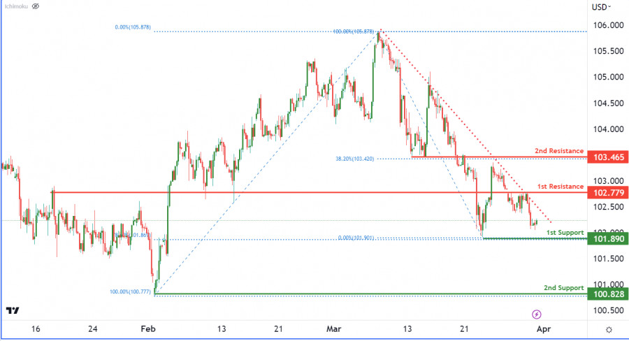 DXY развивает медвежий импульс. Прогноз на 31 марта 2023 г.