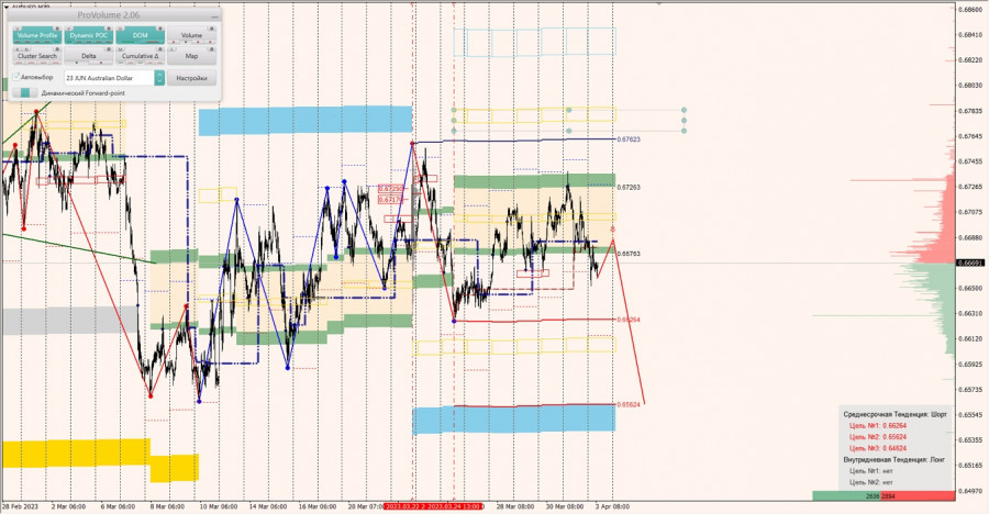 Среднесрочная тенденция: в шорт. Максимальное скопление объемов среднесрочной тенденции расположено в диапазоне по котировкам 0.67170-0.67250. В настоящий момент по паре совершаются инвестиционные операции ниже, указывая на силу продавцов.