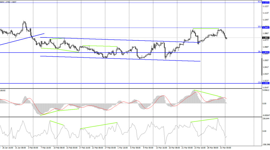 EUR/USD. 3 апреля. Инфляция в Евросоюзе и падает, и не падаетИнстаФорекс - Instaforex, 2 года назад Добрый день, уважаемые трейдеры! Пара EUR/USD в пятницу выполнила новый разворот в пользу американской валюты и закрепление под восходящим трендовым коридором, а также под уровнем коррекции 200,0% - 1,0861. Таким образом, падение котировок может теперь продолжаться в направлении уровня 1,0750, а настроение трейдеров изменилось на «медвежье». Я поддерживаю вариант с дальнейшим падением, но обращаю внимание на тот факт, что в последнее время быки владели инициативой на рынке. На то были вполне конкретные причины, раз европейская валюта показала достаточно сильный рост. И на прошлой неделе ничего не поменялось кардинально, чтобы ожидать резкое отступления быков с рынка. Закрепление курса пары над уровнем 1,0861 может привести к возобновлению роста. В пятницу вышел наиболее важный отчет прошлой недели – по европейской инфляции. Напомню, что в четверг вышел такой же отчет в Германии, который показал сильное снижение индекса потребительских цен. Как выяснилось на следующий день, в Евросоюзе инфляция в марте упала еще сильнее. И трейдеры могли уже по этому поводу начинать массовые распродажи евровалюты, если бы не одно «но». Базовый показатель вновь вырос и составляет теперь 5,7%. Уже в ближайшее время может случиться обгон базовой инфляцией основной. Аналитики прогнозируют, что базовая инфляция продолжит расти и достигнет своего пика лишь летом. Таким образом, Европейский центральный банк будет продолжать находиться под давлением в вопросе повышения процентной ставки. Для ЕЦБ именно базовая инфляция является ключевой, а она как раз и не снижается. И получается следующая картина: инфляция одновременно и падает, и растет. Трейдерам очень сложно понять, как будет реагировать теперь ЕЦБ, потому что на падение основного показателя тоже нельзя закрыть глаза. Ситуация остается достаточно запутанной. На 4-часовом графике пара выполнила закрепление над боковым коридором, что позволяет рассчитывать на продолжение роста. Однако над уровнем коррекции 50,0% - 1,0941 выполнить закрепление не удалось, а в данное время образовалось сразу две «медвежьих» дивергенции. Таким образом, на обоих графиках падение пары, что называется, «назревает» и уже началось. Закрытие котировок над уровнем 1,0941 повысит шансы на продолжение роста в направлении коррекционного уровня 61,8% - 1,1273. Отчет Commitments of Traders (COT):