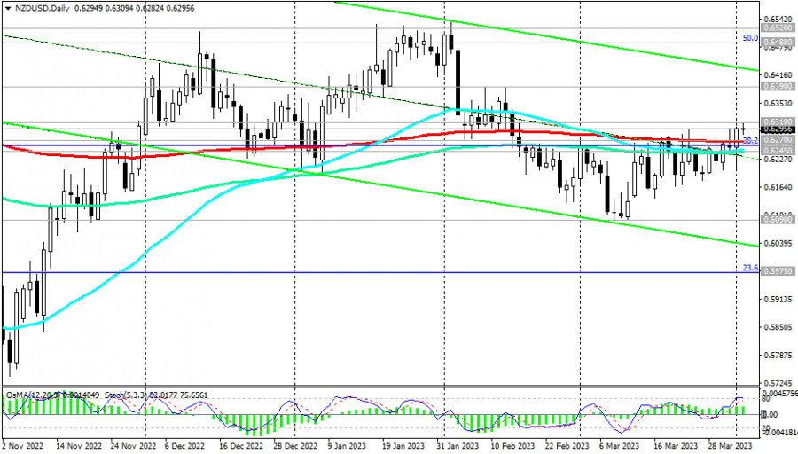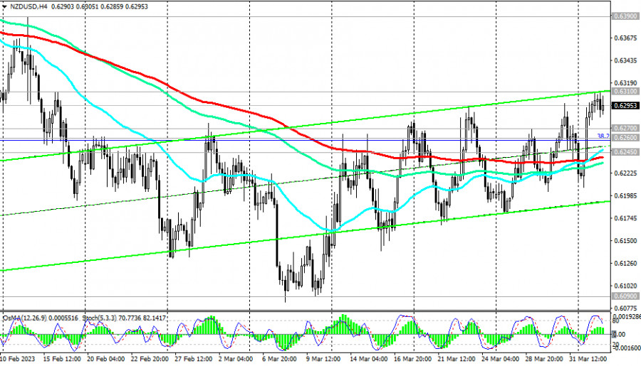 NZD/USD: сценарии динамики на 04.04.2023ИнстаФорекс - Instaforex, 2 года назад Как мы отметили мы в нашем сегодняшнем Фундаментальном анализе, накануне завтрашнего заседания РБНЗ пара NZD/USD показывает смешанную флэтовую динамику. В целом пара двигается в восходящих краткосрочном и среднесрочном трендах, оставаясь при этом в рамках глобального нисходящего тренда. Для продолжения восходящей динамики паре необходимо преодолеть сильный уровень сопротивления 0.6305 (ЕМА50 на недельном графике), чтобы продолжить рост в сторону ключевых долгосрочных уровней сопротивления 0.6720 (ЕМА200 на месячном графике), 0.6600 (ЕМА200 на недельном графике), 0.6530 (ЕМА144 на недельном графике), отделяющих долгосрочный бычий тренд от медвежьего. Возможно, завтра новозеландский доллар и пара NZD/USD смогут получить такой импульс для роста. В этом случае подтвержденный пробой сегодняшнего максимума 0.6310 станет сигналом для наращивания длинных позиций. В альтернативном сценарии NZD/USD вновь снизится в зону среднесрочного медвежьего рынка, пробив ключевой уровень поддержки 0.6270 (ЕМА200 на дневном графике). Пробой уровня поддержки 0.6245 (ЕМА144, ЕМА50 на дневном графике, ЕМА200 на 4-часовом графике) станет подтверждающим сигналом для возобновления коротких позиций. По нашему мнению, пока что свою торговую стратегию нужно пока что выстраивать в предпочтении коротким позициям, находя удачные моменты для входа в них. Уровни поддержки: 0.6270, 0.6260, 0.6245, 0.6210, 0.6200, 0.6090, 0.6000, 0.5975, 0.5900 Уровни сопротивления: 0.6305, 0.6310, 0.6390, 0.6488, 0.6500, 0.6520, 0.6600 *) об особенностях торговли NZD см. в статьях