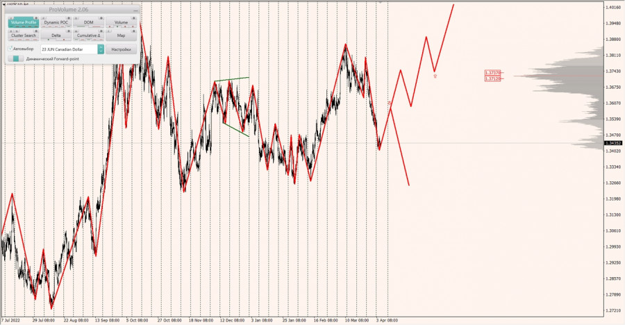 Среднесрочная тенденция: в шорт. Максимальное скопление объемов среднесрочной тенденции расположено в диапазоне по котировкам 1.37150-1.37300 и 1.35150-1.35390. В настоящий момент по паре совершаются инвестиционные операции ниже, указывая на силу продавцов.