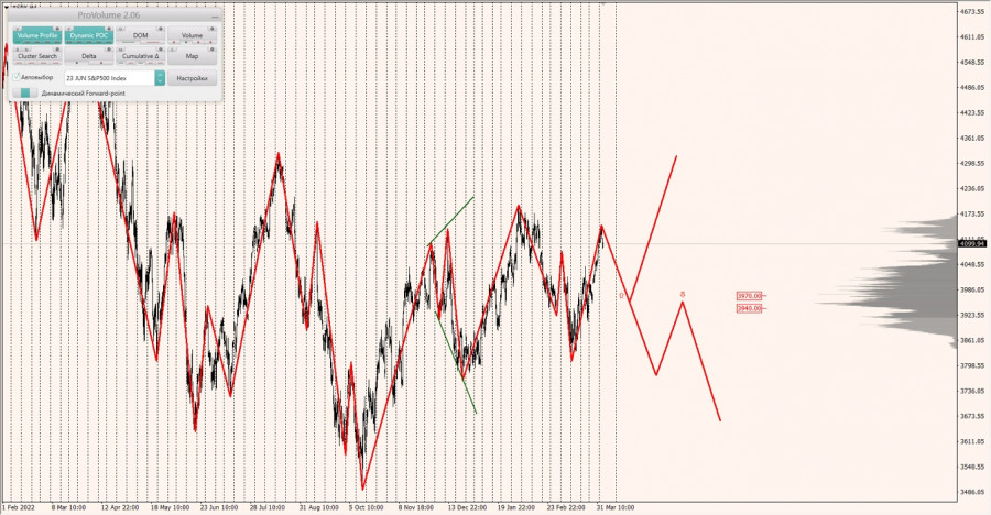 Альтернативный сценарий: при закреплении котировок индекса SNP500 ниже зоны 1/2 (4021.45) при откатах искать продажи по паттерну в новом диапазоне выгодных цен, с целями: обновление минимумов и тестирование верхней границы НКЗ (3920.65).