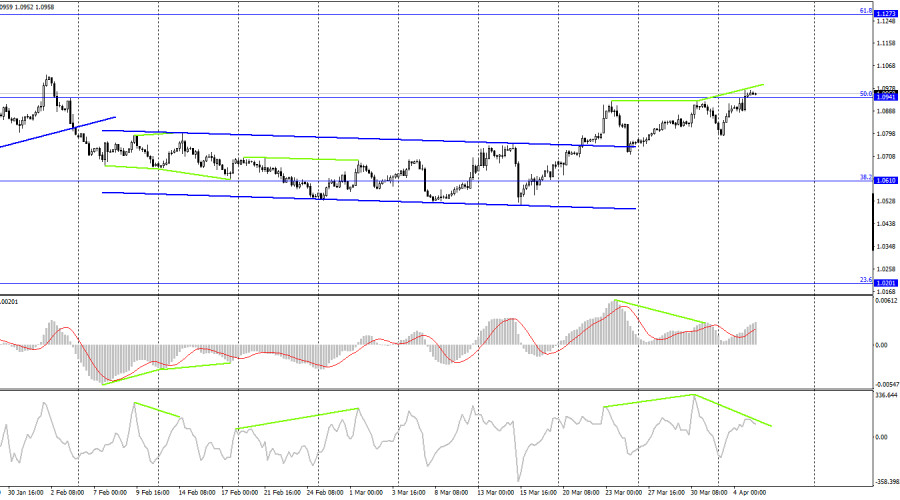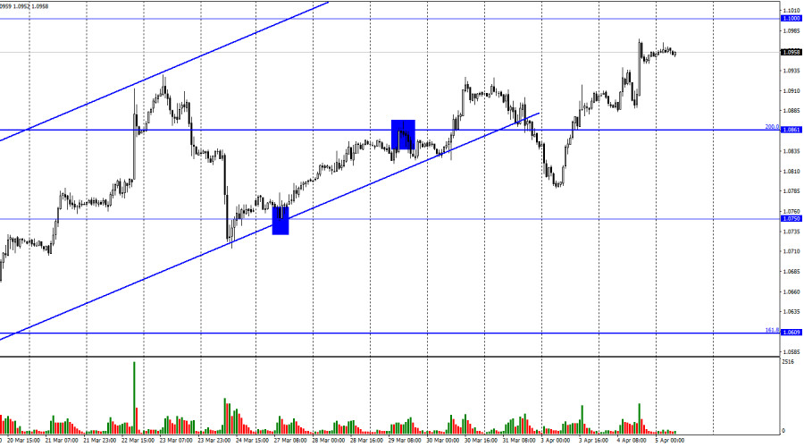 EUR/USD. 5 апреля. Начало месяца – время данных по рынку труда СШАИнстаФорекс - Instaforex, 2 года назад Добрый день, уважаемые трейдеры! Пара EUR/USD во вторник продолжила процесс роста в направлении уровня 1,1000, до которого остается пройти совсем немного. Отбой котировок от этого уровня может сработать в пользу валюты США и некоторого падения в направлении уровня Фибо 200,0% - 1,0861. Закрепление курса пары над уровнем 1,1000 еще сильнее повысит вероятность дальнейшего роста в направлении следующего уровня 1,1100. Информационный фон во вторник был достаточно слабый. Как и в понедельник. Тем не менее это не остановило трейдеров-быков. Начало нового месяца – это всегда интересно, потому что в Америке выходит сразу несколько отчетов по рынку труда. А рынок труда – один из ключевых секторов для ФРС. Безусловно, с течением времени влияние состояния рынка труда на ДКП становится слабее. В данное время трейдеры уверены, что ставка FOMC поднимется еще один раз на 0,25% и на этом процесс ужесточения будет закончен. Я придерживаюсь не столь радикальной позиции и считаю, что инфляция может преподнести сюрприз многим странам в этом году. Причем неприятный сюрприз. Таким образом, ставки всех центральных банков могут вырасти сильнее, чем трейдеры ждут сейчас. Тем не менее на текущий момент рынок труда уже не имеет того влияния на ФРС, как еще несколько месяцев назад. Но от этого сами отчеты не стали менее важными. Вчера вышел один из первых отчетов в этой серии – число открытых вакансий JOLT. Он показал гораздо более слабое значение, чем ожидали трейдеры, что вызвало новую волную продаж американской валюты. Самая большая свеча вверх на часовом графике – это как раз последствия этого отчета. Сегодня выйдет отчет ADP по изменению числа занятых в несельскохозяйственном секторе, а в пятницу – пэйроллы и безработица. Пока что доллар испытывает давление на себе, а трейдеры-медведи отсутствуют на рынке. До конца недели такая картина может сохраняться, если статистика из США не окажется очень сильной. На 4-часовом графике пара выполнила закрепление над боковым коридором, что позволяет рассчитывать на продолжение роста. Однако над уровнем коррекции 50,0%, 1,0941 выполнить закрепление пока не удалось, а в данное время образовалось уже две «медвежьих» дивергенции и третья «назревает». Таким образом, на обоих графиках падение пары продолжает назревать. Однако закрытие котировок над уровнем 1,0941 позволит трейдерам рассчитывать на продолжение роста в направлении коррекционного уровня 61,8%, 1,1273. Отчет Commitments of Traders (COT):