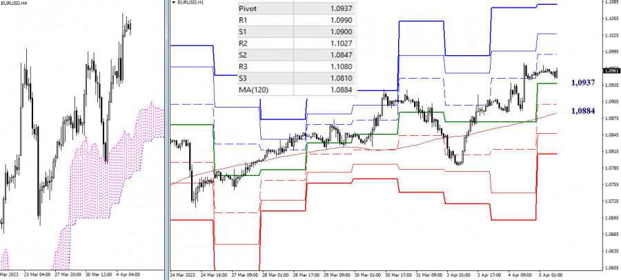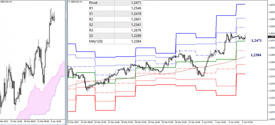EUR/USD и GBP/USD 5 апреля – технический анализ ситуацииИнстаФорекс - Instaforex, 2 года назад EUR/USD Старшие таймфреймы Игроки на повышение вчера продолжили подъём. В результате их основной целью сейчас может служить максимальный экстремум февраля (1,1033). На этом пути можно отметить повышательную цель на пробой облака (1,0965 – 1,1015), которая может затормозить продвижение игроков на повышение. Пройденный ранее месячный уровень 1,0901 сейчас выступает в роли поддержки, далее значение могут иметь дневные поддержки 1,0844 и 1,0799. Н4 – Н1 В настоящий момент основное преимущество на младших временных интервалах принадлежит игрокам на повышение. Развитие преимуществ и реализация дальнейшего подъёма внутри дня будет пролегать через сопротивления классических Пивот уровней (1,0990 – 1,1027 – 1,1080). Ключевые уровни младших таймов сегодня выступают в роли поддержек, формируя зону для коррекционного снижения в пределах 1,0937 (центральный Пивот уровень) – 1,0884 (недельная долгосрочная тенденция). *** GBP/USD Старшие таймфреймы Вчера протестирован первый целевой ориентир (1,2502) дневной цели на пробой облака. Возможно торможение. Далее в случае продолжения подъёма важен будет результат взаимодействия с уровнем 100% отработки цели (1,2580), пробой цели откроет дорогу к месячному сопротивлению 1,2760. Уровни, послужившие основанием для текущего подъёма, продолжают отстаивать интересы игроков на повышение, выполняя роль ближайших поддержек, и располагаясь на рубежах 1,2357 (дневной краткосрочный тренд) и 1,2302 (месячный среднесрочный тренд). Н4 – Н1 Основное преимущество младших таймов находится сейчас на стороне игроков на повышение, тем не менее, в настоящий момент наблюдается коррекционное снижение и тестирование центрального Пивот уровня дня (1,2471). Если коррекция получит развитие, то наиболее важное значение будет иметь результат взаимодействия с ключевым уровнем – недельной долгосрочной тенденцией (1,2384). Пробой и разворот мувинга могут изменить действующий баланс сил. Если коррекция завершится, и пара продолжит подъём, то ориентирами внутри дня выступят сопротивления классических Пивот уровней (1,2549 – 1,2601 – 1,2679). *** При техническом анализе ситуации использованы: старшие таймфреймы – Ichimoku Kinko Hyo (9.26.52) + уровни Фибо Киджун; младшие таймфреймы – Н1 – Pivot Points (классические) + Moving Avarage 120 (недельная долгосрочная тенденция). Материал предоставлен компанией InstaForex - www.instaforex.com |