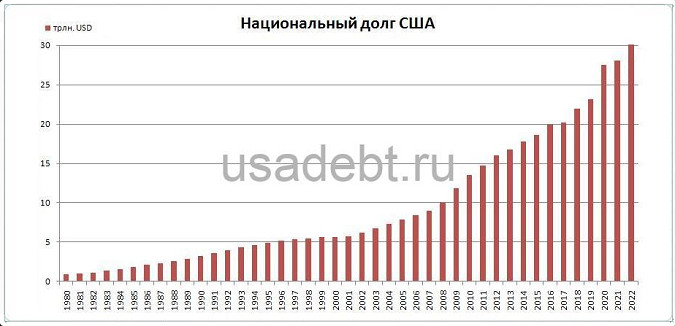 На сегодняшний день национальный долг США составляет более 30 трлн долларов: