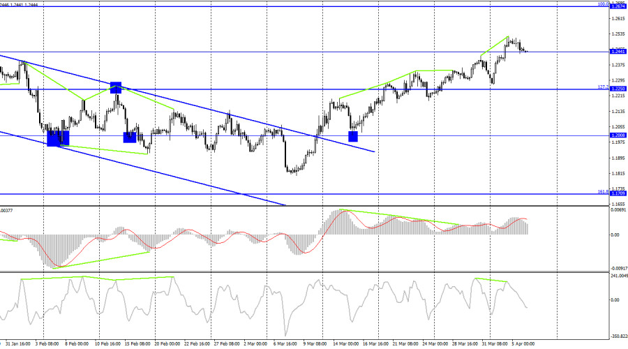 GBP/USD. 6 апреля. Лоретта Местер ожидает ставку ФРС выше 5%ИнстаФорекс - Instaforex, 2 года назад Добрый день, уважаемые трейдеры! На часовом графике пара GBP/USD в среду выполнила разворот в пользу доллара США и возврат к уровню 1,2432. Отбой котировок от этого уровня сработает в пользу британца и возобновления роста в направлении коррекционного уровня 161,8% - 1,2588. Закрытие котировок под 1,2432 позволит рассчитывать на продолжение падения в направлении следующего уровня 1,2342. Восходящий трендовый коридор продолжает характеризовать текущее настроение трейдеров как «бычье». Отчеты по деловой активности и рынку труда США – не единственное, что интересно для трейдеров на этой неделе. Вчера выступила с речью президент ФРБ Кливленда Лоретта Местер. И в своей речи она заявила, что ставка ФРС должна подняться выше 5% и оставаться на этом уровне некоторое время. Строго говоря, Местер не сообщила ничего нового трейдерам, так как в данное время рынок ждет еще минимум одного повышения ставки на 0,25%, а текущий ее размер – 5%. Таким образом, ставка практически в любом случае поднимется выше 5%. Местер также отметила, что ужесточение по-прежнему необходимо, чтобы охладить высокую инфляцию. Она допустила и более высокое поднятие ставки, если экономика США будет хорошо реагировать. Банковский сектор, по ее словам, вышел из стрессового состояния, а регулятор продолжает реализовывать программу QT в поддержку повышению ставок. Местер ожидает, что инфляция снизится до 3,75% к концу года, а сама экономика покажет умеренный рост. На мой взгляд, президент ФРБ Кливленда сделала очень правильные заявления, которые допускают более сильное повышение процентной ставки. Есть опасения, что инфляция в определенный момент перестанет снижаться, поэтому дополнительное ужесточение еще может понадобиться. Я считаю, что реальный прогноз по ставке – это диапазон 5,25-5,75%. На 4-часовом графике пара выполнила разворот в пользу британской валюты и возобновила процесс роста, выполнив закрытие над уровнем 1,2441. Образовалась новая «медвежья» дивергенция у индикатора ССI, однако три предыдущих «медвежьих» дивергенции не привели к сильному падению британца. Как видим, сигналов на продажу в последнее время было достаточное количество, но медведи взяли отпуск. Теперь британец может взять курс на уровень Фибо 100,0% - 1,2674 в случае отбоя от 1,2441. В противном случае падение может продолжиться. Отчет Commitments of Traders (COT): Настроение категории трейдеров «Non-commercial» за последнюю отчетную неделю практически не изменилось. Количество Long-контрактов на руках спекулянтов сократилось на 297 единиц, а количество Short – выросло на 3289. Общее настроение крупных игроков остается прежним – «медвежьим», а количество Short-контрактов по-прежнему сильно превышает количество Long-контрактов. За последние несколько месяцев ситуация перманентно менялась в сторону британца, но сейчас разница между количеством Long и Short на руках спекулянтов все еще остается существенной. Таким образом, перспективы фунта улучшаются, но сам британец в последние несколько месяцев и не растет, и не падает. На 4-часовом графике состоялся выход за пределы нисходящего коридора, и этот момент может поддерживать фунт. Однако замечу, что сейчас многие факторы противоречат друг другу, а информационный фон оказывает не большую поддержку фунту. Календарь новостей 