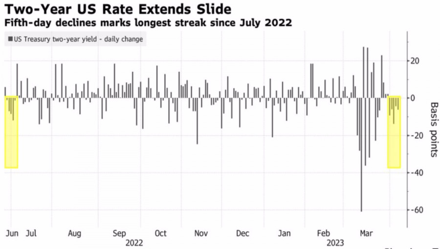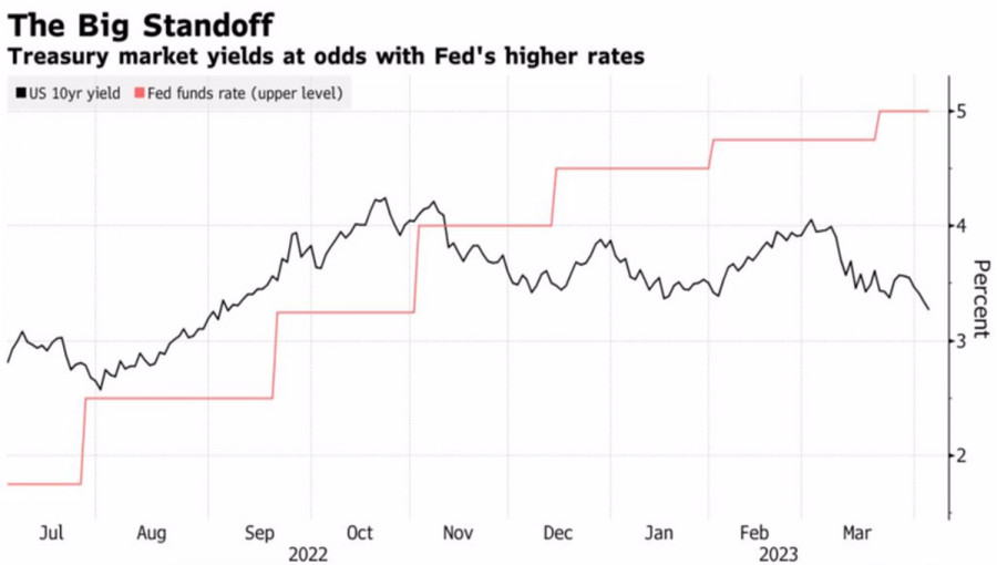 Доллар исполнил лебединую песнюИнстаФорекс - Instaforex, 2 года назад Рецессия в экономике США за углом. Эта новость так напугала финансовые рынки, что доходность казначейских облигаций падает пятый день подряд. Речь идет о самой продолжительной серии с июля 2022. По мнению MUFG, главными бенефициарами снижения ставок американского рынка долга являются иена, франк, фунт и евро. Это позволяет компании прогнозировать возращение EURUSD к середине торгового диапазона 1,1-1,15 в течение ближайшего времени. Впрочем, пока евро делает шаг назад и готовится к выходу в свет важной статистики по занятости в США. Динамика доходности казначейских облигаций США Апрельский рыночный нарратив существенно изменился по сравнению с февральским. Тогда после неожиданно сильных данных по non-farm payrolls и инфляции деривативы прогнозировали рост ставки по федеральным фондам до 5,75% и полностью отказались от идеи «голубиного» разворота ФРС. «Ястребиная» риторика Джерома Пауэлла перед Конгрессом вернула доллар США к жизни. Увы, но дальнейшие события показали, что тот февральский всплеск оказался его лебединой песней. Банковский кризис и серия разочаровывающих данных по Штатам вернули прекрасному лебедю образ гадкого утенка. Снижение числа вакансий до минимальной отметки за два года, слабая статистика по занятости в частном секторе от ADP и деловой активности от ISM заставили срочный рынок уменьшить вероятность повышения ставки по федеральным фондам на 25 б.п на майском заседании FOMC с 70% до 40%. Деривативы видят ее снижение уже в июне. И никакая «ястребиная» риторика чиновников Федрезерва не убеждает их в обратном. Падение доходности казначейских облигаций недвусмысленно намекает на «голубиный» разворот ФРС уже в этом году. Если Центробанк действительно пойдет на ослабление денежно-кредитной политики, это станет приговором для доллара США. Нынче американскую валюту продают на слухах. Впрочем, далеко не все уверены, что путь «быков» по EURUSD на север будет простым. Credit Agricole прогнозирует, что в ближайшее время основная валютная пара свалится в консолидацию, так как рыночная идея снижения ставки по федеральным фондам в корне неверна. Инфляция останется на повышенных уровнях надолго, и ФРС будет вынуждена сделать то, о чем сейчас говорит – удерживать стоимость заимствований на пике длительный период времени. Динамика ставки ФРС и доходности казначейских облигаций США Падение доходности облигаций и устойчивость акций, пока не полностью верящих в рецессию, создает встречный ветер для доллара США. Тем не менее EURUSD идет вниз, и виноват в этом спекулятивный фактор. Хедж-фонды предпочитают не лезть вперед батьки в пекло и закрывают лонги в преддверии релиза данных по американскому рынку труда за март. Технически для активации разворотного паттерна Anti-Turtles EURUSD должна упасть ниже поддержки на 1,084, где расположена верхняя граница диапазона справедливой стоимости 1,052-1,084. Пока пара держится выше данного уровня, делаем акцент на ее покупки. Материал предоставлен компанией InstaForex - www.instaforex.com |