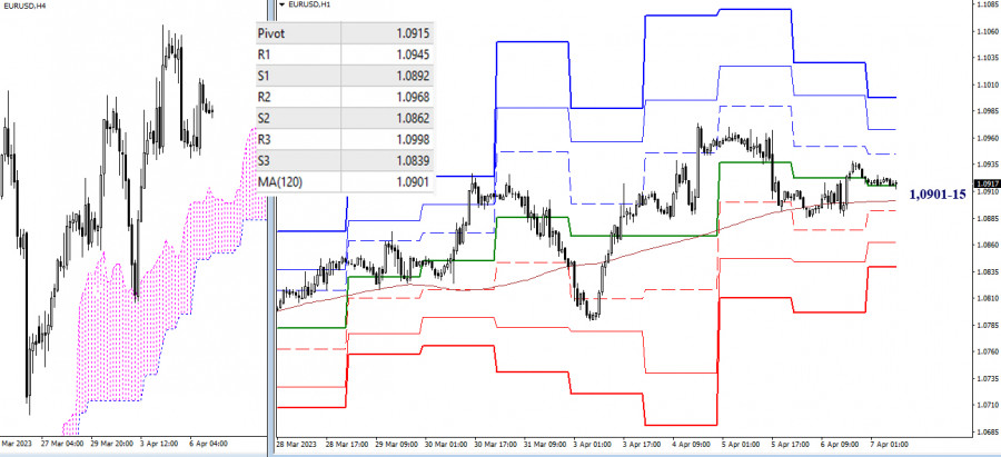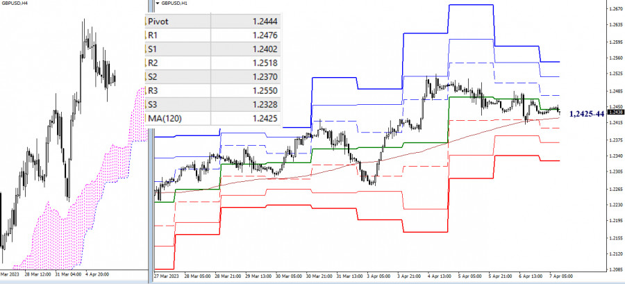 EUR/USD и GBP/USD 7 апреля – технический анализ ситуацииИнстаФорекс - Instaforex, 2 года назад EUR/USD Старшие таймфреймы За прошедшие сутки ситуация не претерпела существенных изменений. Движение вновь приостановлено силой влияния месячного среднесрочного тренда (1,0901). Следующая ближайшая поддержка находится сегодня на 1,0881 (дневной краткосрочный тренд), а повышательные ориентиры на текущий момент сохраняют своё прежнее расположение на рубежах дневной цели на пробой облака (1,0965 – 1,1015) и в точке февральского максимального экстремума (1,1033). Н4 – Н1 На младших временных интервалах основное преимущество пока продолжает оставаться на стороне игроков на повышение. Этому способствует именно поддержка ключевых уровней, которые сегодня объединяют свои усилия в диапазоне 1,0901 – 1,0915 (центральный Пивот уровень дня + недельная долгосрочная тенденция). Сохранение преимущества позволит игрокам на повышение надеяться на новую активность и продолжение подъёма. Ориентирами внутри дня в этом случае выступят сопротивления классических Пивот уровней 1,0945 – 1,0968 – 1,0998. Пробой ключевых поддержек и надёжное закрепление ниже позволит надеяться на приход новой волны медвежьих настроений и усиление позиций игроков на понижение. Поддержки классических Пивот уровней (1,0892 – 1,0862 – 1,0839) будут служить ориентирами для продолжения снижения внутри дня. *** GBP/USD Старшие таймфреймы После тестирования первого целевого ориентира дневной цели на пробой облака Ишимоку (1,2502) продолжается развитие коррекционного снижения. Результативность текущего движения незначительна, поэтому о существенном изменении ситуации пока говорить рано. Повышательными ориентирами старших временных интервалов продолжают оставаться дневная цель (1,2502 – 1,2580) и месячный уровень (1,2760). Ближайшей поддержкой по-прежнему служит дневной краткосрочный тренд (1,2399), далее важное значение будет иметь месячный среднесрочный тренд (1,2302). Н4 – Н1 Коррекционное снижение привело пару к тестированию ключевых уровней младших таймфреймов. Они сегодня объединены в районе 1,2425 – 1,2444 (центральный Пивот уровень дня + недельная долгосрочная тенденция). Нахождение рынка выше ключевых уровней сохраняет основное преимущество на стороне игроков на повышение. Их ориентиры внутри дня сегодня расположены на 1,2476 – 1,2518 – 1,2550 (сопротивления классических Пивот уровней). Закрепление ниже ключевых уровней (1,2425-44) и разворот мувинга изменят действующий баланс сил. Поддержку в этом случае окажут 1,2402 – 1,2370 – 1,2328 (поддержки классических Пивот уровней). *** При техническом анализе ситуации использованы: старшие таймфреймы – Ichimoku Kinko Hyo (9.26.52) + уровни Фибо Киджун; младшие таймфреймы – Н1 – Pivot Points (классические) + Moving Avarage 120 (недельная долгосрочная тенденция). Материал предоставлен компанией InstaForex - www.instaforex.com |