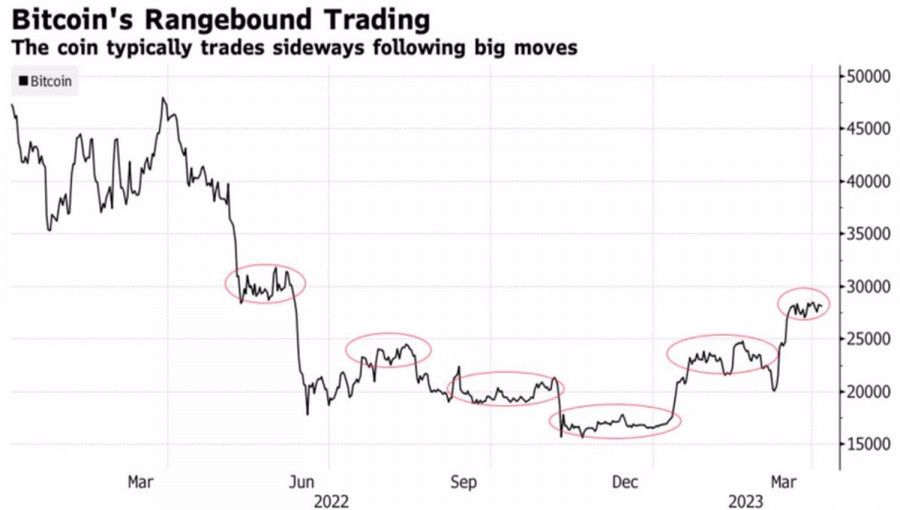 Биткойн тянет канат на себяИнстаФорекс - Instaforex, 2 года назад Биткойн в очередной раз стал жертвой собственного успеха. Уже шестой раз за последний год котировки BTCUSD после бурных телодвижений впадают в консолидацию. Токен как будто опасается собственной прыти. При этом существенное снижение объемов торгов и ликвидности на фоне сваливания лидера сектора крипто-валют в диапазонную торговлю можно трактовать как отсутствие новых покупателей. Не очень хорошая новость, однако сколько уже в 2023 было плохих, а биткойн вырос на 72% по итогам первого квартала. Динамика биткойна Что не убивает, делает нас сильнее. Казалось бы, крах FTX и тесно связанных с криптоиндустрией американских банков вкупе с агрессивными действиями регулирующих органов США должны были продлить крипто-зиму. В реальности все вышло наоборот. Биткойн не только выжил, то и рванул в направлении 29000-30000. Ранее эта область неоднократно выступала в качестве поддержки, когда цены находились выше. Сейчас поддержка по всем канонам технического анализа превратилась в сопротивление. Что поможет «быкам» по BTCUSD его пробить? Возможно, сезонный фактор? Апрель является для лидера сектора криптовалют вторым лучшим месяцем года после октября. За последние пять лет по итогам второго месяца весны он рос в среднем на 15,6%. Сезонная динамика биткойна На самом деле сезонность – не очень хороший аргумент для открытия позиций. Следует ориентироваться на внешний фон, который в настоящее время несет в себе много путаницы. С одной стороны, реальная стоимость заимствований в США остается отрицательной, так как ставка по федеральным фондам по-прежнему ниже инфляции. Это хорошая новость для рискованных активов. А вот рост рисков рецессии, что проявляется в глубокой инверсии кривой доходности, – плохая. Неудивительно, что «быки» и «медведи» по BTCUSD начали перетягивать канат, в результате чего токен свалился в консолидацию. На мой взгляд, ему сейчас поможет слабая макростатистика по Штатам. В этом случае вероятность окончания цикла ужесточения денежно-кредитной политики увеличится, доходность казначейских облигаций снизится, а доллар США ослабнет. Фондовые индексы на фоне падения ставок американского долгового рынка сохранят устойчивость. Напротив, приятный сюрприз от американской занятости внесет больше путаницы. Инвесторы будут говорить, что ФРС еще не выполнила свою работу и требовать продолжения монетарной рестрикции. Доходность казначейских облигаций и доллар США вырастут, акции могут упасть. Все это создаст встречный ветер для BTCUSD. Технически консолидация и образованный на дневном графике биткойна паттерн "Всплеск и полка" требуют рассмотрения различных вариантов развития событий для построения эффективной стратегии. Прорыв верхней границы диапазона консолидации 27000-29000 усилит риски восстановления восходящего тренда и станет основанием для формирования лонгов с таргетами на 30600 и 32000. Напротив, падение ниже поддержки на 27000 – повод для продаж. Материал предоставлен компанией InstaForex - www.instaforex.com |
