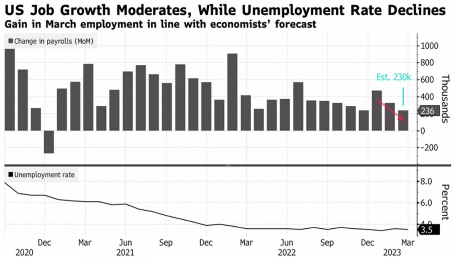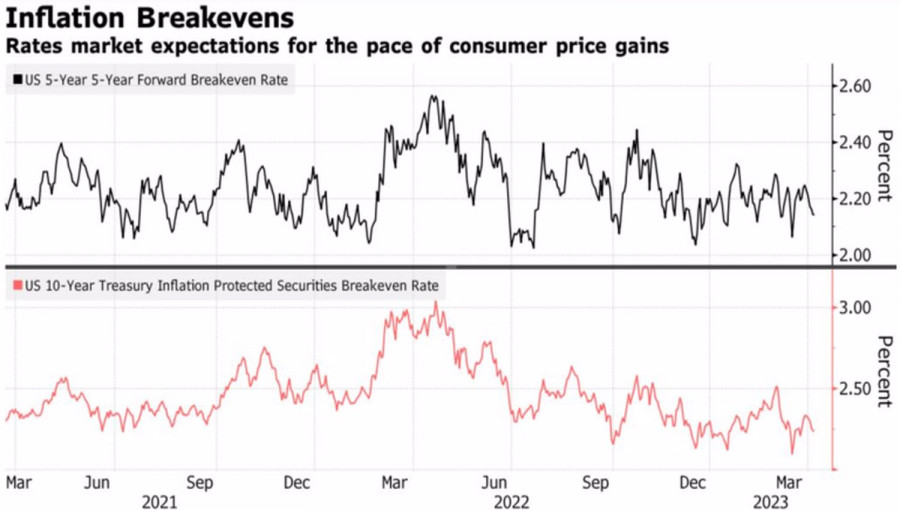 Доллар выиграл времяИнстаФорекс - Instaforex, 2 года назад Рынок труда остывает, но не так быстро, как хотелось бы ФРС. Это сохраняет актуальность майского похода, однако до следующего заседания FOMC еще много времени. Все может измениться. Пока же релиз данных по американскому рынку труда повысил вероятность ужесточения денежно-кредитной политики Федрезерва на 25 б.п. в мае с 47% до 67%, что позволило «медведям» по EURUSD сохранить интригу в борьбе за важный уровень 1,09. Занятость вне сельскохозяйственного сектора США в марте замедлилась с +326 тыс. до +236 тыс., что соответствовало прогнозу экспертов Bloomberg в +239 тыс. и является минимальным значением с декабря 2020. Уровень безработицы снизился до 3,5%, темпы роста средней зарплаты упали до 4,2%. Речь идет о самой медленной динамике с июня 2021. Динамика занятости и безработицы в США Безусловно, рынок труда США не так хорош, как пару месяцев назад, однако прогноз FOMC предусматривает рост безработицы до 4,5%. Пока показатель топчется на месте, говорить о достижении цели ценовой стабильности слишком рано. ФРС должна завершить дело, и это обстоятельство позволяет деривативам прогнозировать, что цикл ужесточения денежно-кредитной политики не закончен. Внимание инвесторов переключается на инфляцию, релиз мартовских показателей которой станет ключевым событием недели к 14 апреля. По прогнозам экспертов Bloomberg, потребительские цены замедлятся с 6% до 5,2%, базовый индикатор ускорится с 5,5% до 5,6%. Такая смешанная динамика оставляет дверь для повышения ставки по федеральным фондам в мае открытой, хотя дискуссии внутри FOMC обещают быть очень горячими. «Ястребы» наверняка будут кивать на высокую базовую инфляцию, центристы – на снижение инфляционных ожиданий, измеренных рыночными методами. Неудивительно, ведь после серии разочаровывающих данных по деловой активности и рынку труда доходность 10-летних TIPS снизилась с 1,7% в начале марта до 1%. Динамика инфляционных ожиданий в США Таким образом, судьба основной валютной пары по-прежнему находится в руках ФРС, а ее вердикты будут основаны на входящих данных. Если мартовская занятость в США не смогла прояснить ситуацию, возможно, это удастся инфляции? Пока же EURUSD продолжает цепляться за отметку 1,09. Не будем забывать, что в паре всегда две валюты, и уверенность евро обусловлена решительностью ЕЦБ сломать хребет высокой инфляции и позитивными сдвигами в экономике еврозоны. Для продолжения евро нужно совсем немного – чтобы инфляция в США продолжала замедляться. Технически на дневном графике EURUSD имеет место небольшой откат в связи с попыткой «медведей» реализовать внутренний бар. Если она завершится неудачно, возвращение к верхней границе данного бара вблизи 1,097 усилит риски восстановления восходящего тренда и станет основанием для открытия лонгов с таргетом на 161,8% по паттерну AB=CD. Он расположен вблизи отметки 1,1335. Для покупок евро подойдет отбой от $1,0855 и $1,0825. Материал предоставлен компанией InstaForex - www.instaforex.com |