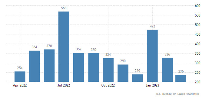 Горящий прогноз по GBP/USD от 10.04.2023ИнстаФорекс - Instaforex, 2 года назад Нет ничего удивительного в том, что несмотря на публикацию доклада Министерства труда Соединенных Штатов, рынок в пятницу фактически стоял на месте. Ведь в Европе и Северной Америке отмечали Страстную Пятницу. А ведь его содержание оказалось довольно интересным. И дело не в уровне безработицы, который, как и ожидалось, остался неизменным. Речь о количестве новых рабочих мест вне сельского хозяйства, коих было создано всего 236 тыс. Предполагалось, что их окажется 250 тыс. Тогда как в предыдущем месяце было создано 326 тыс. новых рабочих мест. Иными словами, американский рынок труда явно теряет динамику, что конечно же повышает вероятность постепенного смягчения монетарной политики Федеральной Резервной Системы. А это естественным образом будет оказывать на доллар давление. Вот только ждать реакции рынка стоит не раньше открытия американской торговой сессии, так как Европа сегодня продолжает отдыхать. Количество новых рабочих мест, созданных вне сельского хозяйства (Соединенные Штаты): Валютная пара GBPUSD находится в стадии отката от уровня сопротивления 1.2500. Вследствие этого движения фунт стерлингов потерял в стоимости около 0,8%, это примерно 110 пунктов. Несмотря на действующий откат, восходящий настрой по-прежнему имеет место, на это указывает недавнее обновление локального максимума среднесрочного восходящего тренда. Технический инструмент RSI H4 в ходе отката пересек среднюю линию 50 сверху вниз. Этот технический сигнал указывает на рост объема коротких позиций по фунту стерлингов во внутридневном периоде. Скользящие линии MA на Alligator H4 переплетаются друг с другом, что указывает на замедление восходящего цикла. В то время как в дневном периоде индикатор Alligator Ожидания и перспективы Можно предположить, что действующий откат служит этапом перегруппировки торговых сил, при котором возможен новый виток роста. Однако, чтобы эта теория реализовалась на рынке, необходимо соблюсти ряд технический условий. В первую очередь действующий откат должен завершит формирование. В качестве опоры может служить район 1.2380/1.2400. Последующий сигнал в пользу роста станет возвращение цены в предел уровня 1.2500, где возможен рост объема длинных позиций по фунту стерлингов. Что касается нисходящего сценария, то он рассматривается трейдерами в качестве полноразмерной коррекции, где действующий откат сохранится по направлению уровня 1.2300. Комплексный индикаторный анализ в краткосрочном и внутридневном периодах ориентированы на стадию отката. В то время как среднесрочный цикл по-прежнему указывает на восходящий тренд. Материал предоставлен компанией InstaForex - www.instaforex.com |