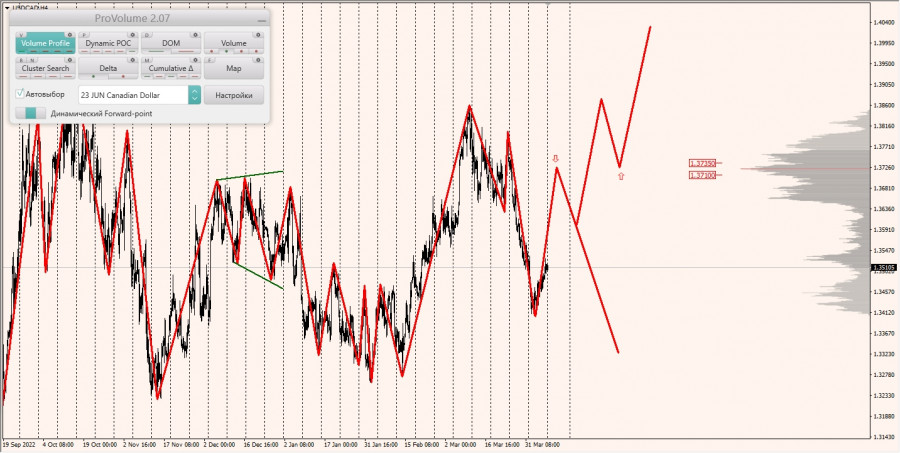Долгосрочная тенденция: в шорт. Максимальное скопление объемов текущего контракта расположено в диапазоне по котировкам 1.37100-1.37350. В настоящий момент по паре совершаются инвестиционные операции ниже, указывая на силу продавцов.
