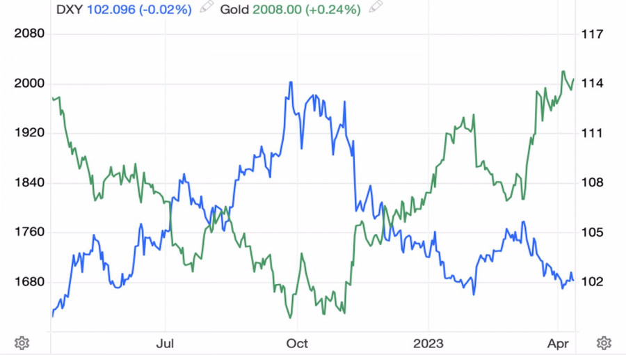 Золото заблудилось в трех соснахИнстаФорекс - Instaforex, 2 года назад Март стал для золота феерическим, а в апреле кто-то как будто поставил его на паузу. Покупатели и продавцы сражаются за уровень $2000 за унцию, и если «медведи» считают, что драгметалл не сможет надолго задержаться выше него, то «быки» всерьез настроены на обновление рекордных максимумов. Кто прав? Время рассудит. По итогам первого месяца весны золото выросло на 9%, запасы специализированных биржевых фондов увеличились на 32 т., а Китай добавил 18 т., нарастив свои резервы до 2068 т. Если Поднебесная активно скупает драгметалл с декабря, то запасы ETF, напротив, таяли на глазах на протяжении 9 месяцев подряд. Несмотря на позитив в марте, отток капитала по итогам первого квартала превысил 28 т. Резкий рост цен и увеличение запасов специализированных биржевых фондов говорят о серьезном изменении рыночного нарратива. Если ранее в центре внимания находилась только инфляция, для борьбы с которой ФРС должна была агрессивно повышать ставку по федеральным фондам, то с весны ее вытесняют страхи по поводу рецессии в экономике США. Дескать, трещины в банковской системе и других отраслях не только остановят Федрезерв, но и заставят его сделать «голубиный» разворот уже в 2023. Страхи из-за скорого спада снижают как номинальную, так и реальную доходность казначейских облигаций и ослабляют доллар США. В результате выигрывает не имеющее собственной доходности золото. В том числе, благодаря тому, что котируется оно в теряющей позиции на Forex американской валюте. Динамика золота и доллара США Таким образом, поклонники XAUUSD делают ставку на окончание цикла ужесточения денежно-кредитной политики ФРС и растущие риски рецессии. Противники считают, что рынок смотрит в одну сторону, а Федрезерв в другую. Последние прогнозы FOMC предполагают, что ставка по федеральным фондам останется на плато, по меньшей мере до 2024, и инвесторам со временем придется корректировать свои взгляды и отказываться от идеи «голубиного» разворота в 2023. В результате, по мнению Metals Focus, золото не задержится надолго выше $2000 за унцию и рискует рухнуть к $1700. Если ФРС ответит на призыв МВФ и продолжит повышать ставки, не обращая внимания на трещины в собственной экономике, драгметалл рискует ослабнуть, однако вряд ли, на мой взгляд, он просядет так глубоко, как прогнозирует Metals Focus. В конечном итоге чем выше стоимость заимствований, тем ближе рецессия. Золото же является более эффективной страховкой от спада в экономике, чем от инфляции. Пусть и принято считать по-другому. Технически на дневном графике драгметалла может быть активирован разворотный паттерн 1-2-3. Для этого необходим успешный штурм поддержки на $1982 за унцию, где находится справедливая стоимость. Он станет основанием для краткосрочных продаж. Напротив, прорыв верхней границы диапазона справедливой стоимости $1926-2026 усилит риски продолжения северного похода золота в направлении $2080 и $2110 за унцию. При таком раскладе будем его покупать. Материал предоставлен компанией InstaForex - www.instaforex.com |