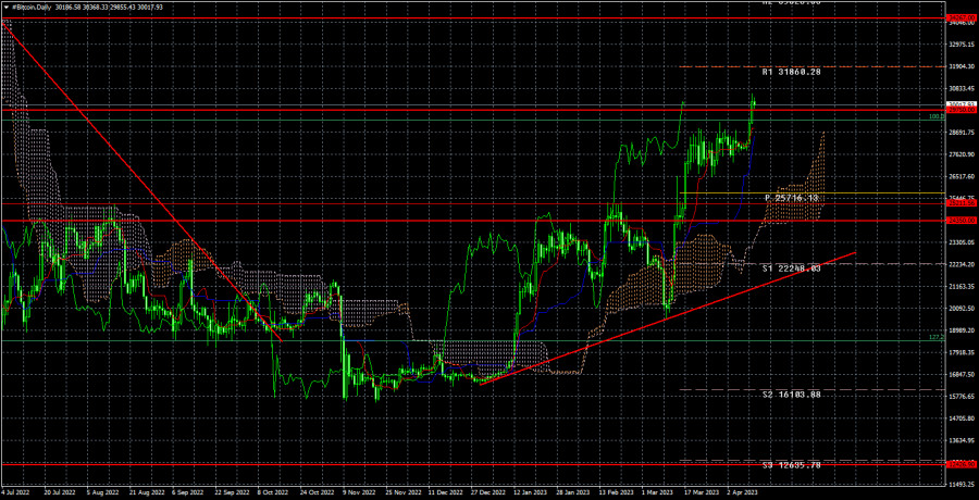 Не дожидаясь отчета по инфляции...ИнстаФорекс - Instaforex, 2 года назад Криптовалюта биткоин выросла до отметки 29 750$, как мы и прогнозировали. На данный момент цена закрепилась лишь немного выше этого уровня, но этого уже вполне достаточно, чтобы трейдеры могли зафиксировать прибыль. Восходящая тенденция сохраняется, восходящая линия тренда остается актуальной. Таким образом, пока цена не ушла обратно ниже уровня 29 750$, вполне можно оставаться в лонгах со следующей целью 34 267$. Закрепление ниже этого уровня позволит даже открыть небольшие шорты и выйти из лонгов. Как мы и говорили ранее, биткоин продолжает торговаться по схеме «трендовый скачек – флэта на несколько недель/месяцев». Криптовалюта около месяца торговалась исключительно вбок, а затем, вчера резко подорожала. В принципе, мы не сомневаемся, что все дело в отчете по инфляции в США, который будет опубликован уже через полчаса. Пару дней назад мы говорили, что резкое снижение индекса потребительских цен может еще сильнее повысить спрос на «биток», так как еще сильнее понизит шансы на еще хотя бы одно повышение ставки ФРС. Чем быстрее ФРС закончит цикл ужесточения монетарной политики, тем быстрее приступит к циклу снижения ставки. Многие эксперты говорят, что первое снижение ставки случится уже в конце текущего года. Такой фундаментальный фон может поддерживать рисковые активы. Не секрет, что доступная информация может отрабатываться рынком, что называется, «авансом». Именно это и происходит сейчас с «битком». Также о связи с инфляцией известно еще с января-месяца, когда тоже случилось резкое замедление, которое и спровоцировало существенный рост первой криптовалюты в мире. Сегодня же ожидается падение сразу на 0,8% в годовом исчислении, до 5,2%. Хоть об этом доподлинно еще и неизвестно, но какая разница, если рынок уже отработал именно этот исход? Теперь даже если инфляция замедлится меньше, ничего уже не изменишь. Вряд ли биткоин откатиться тут же вниз, в отличие от доллара США, который может немного прибавить в случае меньшего падения индекса потребительских цен. Общее обесценивание доллара в последние недели тоже играет свою роль, так как биткоин оценивается именно в валюте США. Чем дешевле становится валюта, тем дороже сам биткоин. В то же время «биток» прибавил уже 100% стоимости от минимумов около 15 000$. Нужна коррекция вниз. На 24-часовом таймфрейме биткоин преодолел еще один важный уровень 29 750$, поэтому трейдеры могут оставаться в длинных позициях с целью 34 267$. Пока что признаков начала коррекции нет. Закрепление ниже уровня 29 750$ как раз будет сигналом на продажу и к коррекции. Продажи биткоина тоже могут быть актуальными при формировании подобного сигнала, но тренд сейчас «бычий», на сильное падение «битка» при наличии восходящей линии тренда рассчитывать не приходится. Материал предоставлен компанией InstaForex - www.instaforex.com |