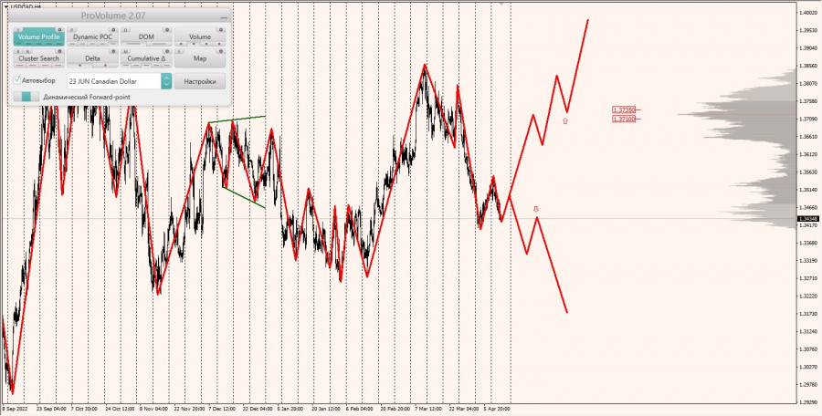 Долгосрочная тенденция: в шорт. Максимальное скопление объемов текущего контракта расположено в диапазоне по котировкам 1.37100-1.37350. В настоящий момент по паре совершаются инвестиционные операции ниже, указывая на силу продавцов.