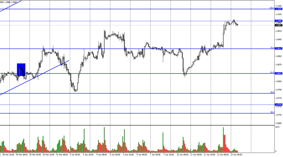 EUR/USD. 13 апреля. Евро уже у 1,1000. Инфляция в США падает высокими темпамиИнстаФорекс - Instaforex, 2 года назад Добрый день, уважаемые трейдеры! Пара EUR/USD в среду продолжала процесс роста в направлении уровня 1,1000. Отбой котировок от этого уровня сработает в пользу американской валюты и некоторого падения в направлении коррекционного уровня 76,4%, 1,0917. Закрепление курса пары над 1,1000 повысит вероятность дальнейшего роста в направлении уровня Фибо 100,0%, 1,1035. Вчера американская валюта показала очередное падение. Информационный фон был необширным, но сильным. Индекс потребительских цен в США по итогам марта снизился с 6,0% до 5,0% г/г. Базовый показатель же, наоборот, вырос с 5,5% до 5,6%. Однако трейдеры увидели только первый показатель, так как он снизился очень сильно, на 1%. Трейдеры-быки активизировались после этого отчета, что тоже вполне справедливо. В последнее время на рынок неоднократно поступали слухи и заявления крупных банков о том, что ФРС в мае может отказаться от повышения процентной ставки. Если инфляция падает высокими темпами, то спешить с новым ужесточением ДКП американскому регулятору не нужно. Таким образом, после вчерашнего отчета вероятность повышения ставки в мае снизилась ниже 50%, а доллар США вновь начал терять позиции. Теперь было бы очень кстати узнать, как обстоят дела с европейской инфляцией, которая по последнему отчету тоже очень сильно замедлилась. Но все же в Евросоюзе она выше, чем в США, а ЕЦБ еще рано думать об отказе от ужесточения ДКП. Я не сомневаюсь, что ставка ЕЦБ будет повышена в мае еще раз, а европейская валюта получает новые основания, чтобы продолжать рост. На мой взгляд, оба центральных банка приближаются к моменту завершения процесса повышения ставки, но ЕЦБ начал позже повышать свою, соответственно, может должен закончить позже. Еще некоторое время на рынке могут царить трейдеры-быки. На 4-часовом графике пара выполнила закрепление над боковым коридором, что позволяет трейдерам рассчитывать на продолжение роста в направлении уровня коррекции 61,8%, 1,1273. Над уровнем коррекции 50,0%, 1,0941, также удалось выполнить закрепление, что повышает шансы на дальнейший рост. «Бычья» дивергенция у индикатора CCI аналогично сработала в пользу евро. Новых назревающих дивергенций пока не наблюдается. Отчет Commitments of Traders (COT):