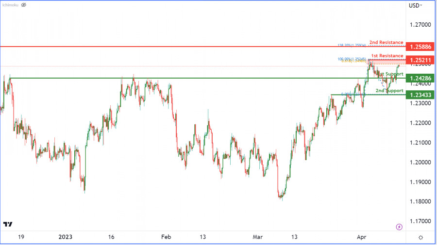 GBPUSD, H4 | возможен разворот от 1-го уровня сопротивленияИнстаФорекс - Instaforex, 2 года назад На графике GBP/USD преобладает медвежий настрой, что означает возможное дальнейшее падение цены в ближайшем будущем. В настоящий момент цена торгуется на отметке 1,2485. Если медвежий тренд продолжится, возможен отбой от 1-го уровня сопротивления на 1,2521 и падение к 1-му уровню поддержки на отметке 1,2428. Это уровень поддержки перекрытия, который ранее удержал цену от падения. Если цена пробьет 1-й уровень поддержки, ее следующей целью станет 2-й уровень поддержки на отметке 1,2343, который является еще одной поддержкой перекрытия, от которой цена неоднократно отскакивала в прошлом. Первый уровень сопротивления на отметке 1,2521 является уровнем сопротивления отката и также совпадает с уровнем проекции Фибоначчи 61,80%. Это создает сильную зону сопротивления, которую цена может с трудом пробить. Если цена пробьет 1-й уровень сопротивления, ее следующей целью станет 2-й уровень сопротивления на отметке 1,2588, который представляет собой локальный максимум предыдущего бычьего тренда. Этот уровень также совпадает с уровнем расширения Фибоначчи 138,20%, что делает его сильным уровнем сопротивления. Материал предоставлен компанией InstaForex - www.instaforex.com |