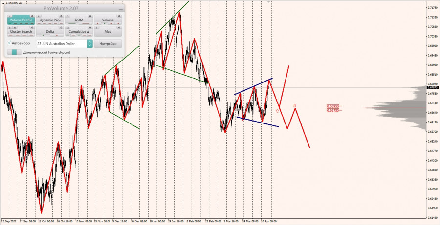 Долгосрочная тенденция: в лонг. Максимальное скопление объемов текущего контракта расположено в диапазоне по котировкам 0.66750-0.66950. В настоящий момент по паре совершаются инвестиционные операции выше, указывая на силу покупателей.