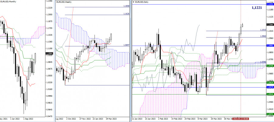 EUR/USD и GBP/USD 14 апреля – технический анализ ситуацииИнстаФорекс - Instaforex, 2 года назад EUR/USD Старшие таймфреймы Вчера игроки на повышение обновили максимум февраля (1,1033) и легко вышли за пределы дневной цели. Тем самым показывая, что у текущего восходящего движения могут быть хорошие перспективы. Следующим целевым ориентиром на старших таймах в сложившейся ситуации является месячное сопротивление (1,1221). Пройденные ранее уровни дневной цели (1,1015 – 1,0965) и дневной краткосрочный тренд (1,0953) выступают сейчас в роли ближайших поддержек на случай очередной смены настроений. Н4 – Н1 На младших таймах игроки на повышение развивают восходящий тренд. Повышательными ориентирами внутри дня служат классические Пивот уровни, которые сегодня находятся на 1,1083 – 1,1121 – 1,1173. Если игроки на повышение потеряют инициативу, то при развитии коррекции значение будут иметь следующие поддержки – 1,1031 (центральный Пивот уровень) – 1,0993 (S1) – 1,0943 (недельная долгосрочная тенденция). Закрепление ниже 1,0943 изменит действующий баланс сил, общую ситуацию при этом лучше будет оценить заново. *** GBP/USD Старшие таймфреймы Игрокам на повышение удалось накануне завершить нисходящую коррекцию и восстановить дневной восходящий тренд. Развитие тренда направлено сейчас на исполнение дневной цели на пробой облака (1,2580) и дальнейший подъём к месячному сопротивлению (1,2760). Если игроки на повышение в очередной раз потерпят неудачу, то при снижении значение по-прежнему будут иметь поддержки дневного краткосрочного тренда (1,2444) и месячного среднесрочного тренда (1,2302). Н4 – Н1 Игроки на повышение протестировали первое сопротивление классических Пивот уровней (1,2544). Наблюдаем развитие торможения и зарождение коррекции. Если подъём будет продолжен, то следующие сопротивления находятся на рубежах 1,2569 (R2) и 1,2603 (R3). Если будет продолжено коррекционное снижение, то в работу вступят поддержки. Наиболее значимыми в данном направлении сегодня являются рубежи 1,2510 (центральный Пивот уровень дня) – 1,2485 (S1) – 1,2447 (недельная долгосрочная тенденция). Закрепление ниже и разворот мувинга изменят действующий баланс сил в пользу игроков на понижение. *** При техническом анализе ситуации использованы: старшие таймфреймы – Ichimoku Kinko Hyo (9.26.52) + уровни Фибо Киджун; младшие таймфреймы – Н1 – Pivot Points (классические) + Moving Avarage 120 (недельная долгосрочная тенденция). Материал предоставлен компанией InstaForex - www.instaforex.com |