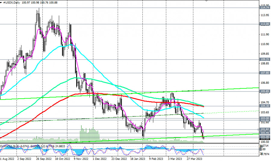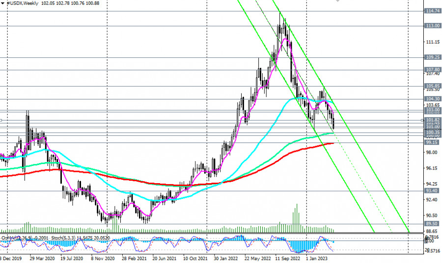 Индекс доллара #USDX: сценарии динамики на 14.04.2023ИнстаФорекс - Instaforex, 2 года назад Как мы отметили в нашем сегодняшнем Фундаментальном анализе, перспективы доллара ухудшаются, а его индекс DXY (CFD #USDX в терминале МТ4) торгуется в зоне краткосрочного и среднесрочного рынков, снижаясь к ключевым уровням поддержки 100.35 (ЕМА144 на недельном графике), 100.00, 99.15 (ЕМА200 на недельном графике). Пробой уровня поддержки 100.00 может спровоцировать дальнейшее снижение DXY, а пробой уровня поддержки 99.15 значительно повысит риски слома долгосрочного бычьего тренда доллара, который пока еще остается в зоне глобального бычьего рынка, выше уровня поддержки 93.40 (ЕМА200 на месячном графике). В альтернативном сценарии и после отбоя вблизи уровней поддержки 100.35, 100.00 DXY возобновит рост. Первым сигналом для возобновления длинных позиций по нему может стать пробой локального уровня сопротивления 101.45 и важного краткосрочного уровня сопротивления 101.82 (ЕМА200 на 1-часовом графике). Но лишь пробой уровня сопротивления 104.30 (ЕМА200 на дневном графике) вновь выведет DXY в зону среднесрочного и долгосрочного бычьих рынков. В целом же преобладает нисходящая динамика, исходя из чего следует отдавать предпочтение коротким позициям. Уровни поддержки: 101.00, 100.35, 100.00, 99.15, 99.00, 93.40 Уровни сопротивления: 101.45, 101.82, 102.00, 102.80, 103.00, 104.30, 105.00, 105.85, 107.00, 107.80, 109.25 Материал предоставлен компанией InstaForex - www.instaforex.com |