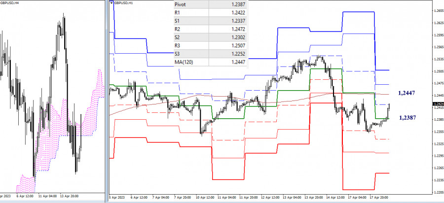 EUR/USD и GBP/USD 18 апреля – технический анализ ситуацииИнстаФорекс - Instaforex, 2 года назад EUR/USD Старшие таймфреймы Вчера активность на рынке по-прежнему принадлежа игрокам на понижение. Они развивали снижение, в результате которого осуществили спуск в зону притяжения месячного среднесрочного тренда (1,0901). Ранее данный уровень не раз влиял на развитие событий, сдерживая действующие движения. Если сейчас наметится отбой от поддержки 1,0901, то ближайшее сопротивление может оказать дневной краткосрочный тренд (1,0954), далее внимание будет направлено на обновление максимального экстремума (1,1076). Если уровень 1,0901 будет пробит, то следующее торможение возможно у дневной поддержки 1,0862, но наиболее важное значение будет иметь снижение в район 1,0796, где сейчас объединяют свои усилия дневной среднесрочный тренд и недельный краткосрочный тренд. Н4 – Н1 На младших временных интервалах вчера вновь состоялась смена приоритетов. Основное преимущество перешло на сторону усиления медвежьих настроений. В настоящий момент наблюдается подъём и тестирование ключевых уровней младших таймов. Если после ретеста центральный Пивот уровень дня (1,0945) и недельная долгосрочная тенденция (1,0977) останутся на стороне игроков на понижение, то можно ожидать нового этапа снижения. Ориентирами внутри дня при этом будут служить поддержки классических Пивот уровней (1,0890 – 1,0855 – 1,0800). Если пара сумеет закрепиться выше ключевых уровней (1,0945-77), то основное преимущество вновь может перейти на сторону игроков на повышение, в результате ориентирами выступят сопротивления классических Пивот уровней (1,0980 – 1,1035 – 1,1070). *** GBP/USD Старшие таймфреймы Фунт вчера закрепился ниже дневного краткосрочного тренда (1,2444). В итоге уровень 1,2444 присоединился к ближайшим повышательным ориентирам, к сопротивлениям цели на пробой дневного облака (1,2502 – 1,2580). На пути усиления медвежьих настроений сегодня по-прежнему стоят уровни дневного золотого креста Ишимоку (1,2340 – 1,2277 – 1,2214) и месячного среднесрочного тренда (1,2302). Н4 – Н1 Игроки на понижение продолжают работу ниже недельной долгосрочной тенденции (1,2447), тем самым сохраняя за собой основное преимущество. Для развития нисходящего движения медведи должны преодолеть поддержки классических Пивот уровней (1,2337 – 1,2302 – 1,2252). Закрепление выше 1,2447 создаст предпосылки для восстановления бычьих позиций. Следующими ориентирами сегодня внутри дня могут выступить 1,2472 и 1,2507 (сопротивления классических Пивот уровней). *** При техническом анализе ситуации использованы: старшие таймфреймы – Ichimoku Kinko Hyo (9.26.52) + уровни Фибо Киджун; младшие таймфреймы – Н1 – Pivot Points (классические) + Moving Avarage 120 (недельная долгосрочная тенденция). Материал предоставлен компанией InstaForex - www.instaforex.com |