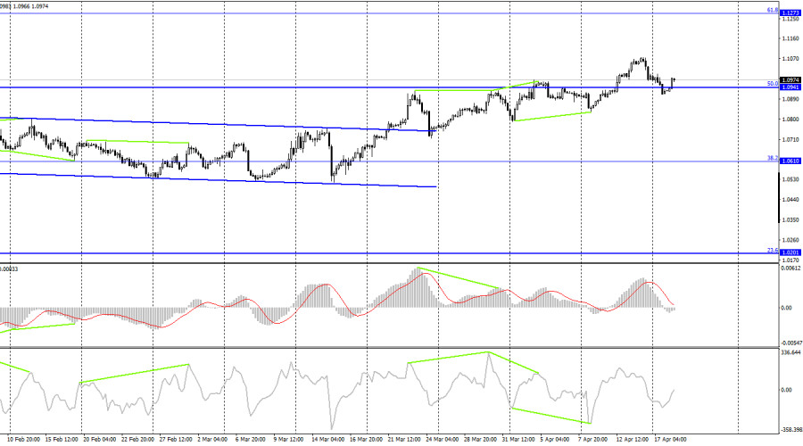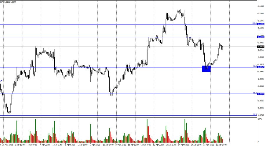 EUR/USD. 18 апреля. Коррекционный вторник.ИнстаФорекс - Instaforex, 2 года назад Добрый день, уважаемые трейдеры! Пара EUR/USD в понедельник выполнила падение к уровню коррекции 76,4% - 1,0917, отбой от него, разворот в пользу европейской валюты и начала процесс роста в направлении уровня 1,1000. Отбой курса пары от этого уровня сработает уже в пользу валюты США и возобновления падения в направлении уровня 1,0917. Закрепление котировок над 1,1000 повысит шансы на продолжение роста. Информационный фон понедельника и вторника был достаточно слабым. Вчера абсолютно нечего было выделить в календаре экономических событий, и сегодня мы наблюдаем точно такую же картину. Однако трейдеры с самого начала недели показали, что не собираются отсиживаться «на заборе» и настроены на активную работу. Говорить о причинах падения пары в понедельник и роста во вторник не получится, потому что факторов роста и падения не было. Я предполагаю, что вчера пара выполнила падение в рамках коррекции против роста на прошлой неделе, а сегодня – выполнила рост в рамках коррекции против падения в пятницу и понедельник. После того, как все коррекции завершены, должно возобновиться основное движение, которое сейчас может быть нисходящим. На мой взгляд, следует обратить внимание на самые старшие графики, на которых паре тоже необходима коррекция. И эта необходимость может заставить медведей активнее торговать в ближайшие недели. Я считаю, что американская валюта достаточно упала в последнее время, чтобы теперь рассчитывать на хотя бы небольшой рост. Американская экономика не находится в плачевном состоянии, а ФРС не собирается пока останавливаться в ужесточении ДКП. Так почему доллар должен продолжать падение? Все последние экономические данные были на неплохом уровне. Были плохие отчеты, но были и хорошие. Что касается ЕЦБ, то рынок сейчас находится на развилке мнений: некоторые считают, что ставка вырастет в мае на 0,50%, некоторые – на 0,25%. Так как единого мнения нет, нет поддержки и у европейской валюты. На 4-часовом графике пара выполнила закрепление над боковым коридором, что позволяет рассчитывать на продолжение роста в направлении уровня коррекции 61,8% - 1,1273. Над уровнем коррекции 50,0% - 1,0941 также удалось выполнить закрепление, что повышает шансы на дальнейший рост. «Бычья» дивергенция у индикатора CCI аналогично сработала в пользу евро. Новых назревающих дивергенций пока не наблюдается. Отчет Commitments of Traders (COT):