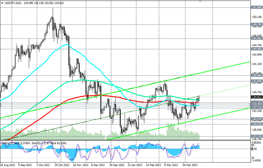 USD/JPY: сценарии динамики на 19.04.2023ИнстаФорекс - Instaforex, 2 года назад Как отметили мы в нашем сегодняшнем «Фундаментальном анализе», USD/JPY растет сегодня вторую неделю подряд, пытаясь закрепиться в зоне среднесрочного бычьего рынка, выше ключевого уровня поддержки 133.70 (ЕМА200 на дневном графике). Выше ключевых уровней поддержки 124.00 (ЕМА144 на недельном графике), 121.00 (ЕМА200 на недельном графике) пара торгуется в зоне долгосрочного и глобального бычьих рынков. В этой ситуации предпочтительными остаются длинные позиции, входить в которые лучше все же при откате к уровням поддержки, также отметили мы. В данном случае речь может идти о зоне сильных уровней поддержки 133.70, 133.45 (ЕМА200 на 1-часовом графике), 133.07 (ЕМА200 на 4-часовом графике), 132.70 (ЕМА50 на недельном графике). Также актуальным может быть вход по бай-стоп-ордеру, расположенному выше сегодняшнего хая 135.13. В альтернативном же сценарии цена пробьёт вышеуказанные уровни поддержки и направится внутрь нисходящего канала на недельном графике, в сторону локального уровня поддержки и минимума года на отметке 127.22. Если снижение продолжится, то пробой ключевых уровней поддержки 124.00, 121.00 выведет USD/JPY в зону долгосрочного медвежьего рынка. *) о важных событиях недели см. в Важнейшие экономические события недели 17.04.2023 – 23.04.2023) Уровни поддержки: 133.70, 133.45, 133.07, 132.70, 130.57, 129.55, 127.22 Уровни сопротивления: 135.00, 135.14, 137.00, 137.80, 138.90 Материал предоставлен компанией InstaForex - www.instaforex.com |
