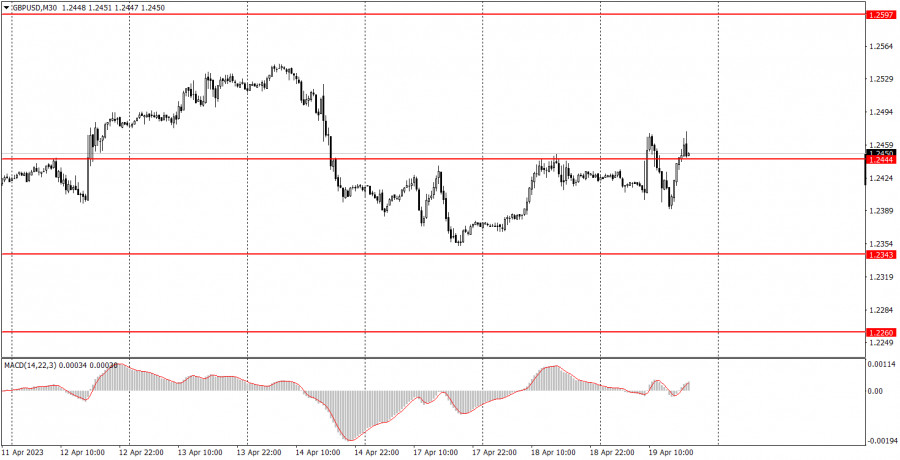 Из фундаментальных событий четверга тоже много выделить не получаются. Состоятся выступления представителей ФРС Кристофера Уоллера и Мишель Боуман, а также представителя ЕЦБ Изабель Шнабель. Все три выступления состояться поздно ночью, поэтому никакого влияния на движение пары в течение дня они не окажут. Содержание этих выступлений станет известно не ранее пятницы. Поэтому можно считать, что никаких фундаментальных событий в течение четверга не будет. Нас ждет максимально скучный и неинтересный день. Общие выводы:Четверг станет еще одним скучным днем в целой череде. Ни для фунта, ни для доллара, ни для евровалюты не будет никаких важных событий. Поэтому в течение дня вероятнее всего будет наблюдаться пониженная волатильность и отсутствие трендового движения по обеим парам. Основные правила торговой системы:1) Сила сигнала считается по времени, которое потребовалось на формирование сигнала(отскок или преодоление уровня). Чем меньше времени потребовалось, тем сильнее сигнал. 2) Если около какого-либо уровня были открыты две или больше сделки по ложным сигналам, то все последующие сигналы от этого уровня следует игнорировать. 3) Во флэте любая пара может формировать массу ложных сигналов или же не формировать их вовсе. Но в любом случае при первых признаках флэта лучше переставать торговать. 4) Торговые сделки открываются во временной период между началом европейской сессии и до середины американской, когда все сделки должны быть закрыты вручную. 5) На 30-минутном ТФ по сигналам от индикатора MACD можно торговать только при наличие хорошей волатильности и тренда, который подтверждается линией тренда или трендовым каналом. 6) Если два уровня расположены слишком близко друг к другу(от 5 до 15 пунктов), то следует рассматривать их, как область поддержки или сопротивления. Что на графиках:Ценовые уровни поддержки и сопротивления – уровни, которые являются целями при открытии покупок или продаж. Около них можно размещать уровни Take Profit. Красные линии – каналы или линии тренда, которые отображают текущую тенденцию и показывают в какую сторону предпочтительно сейчас торговать. Индикатор MACD(14,22,3) – гистограмма и сигнальная линия – вспомогательный индикатор, который также можно использовать в качестве источника сигналов. Важные выступления и отчеты(всегда содержаться в календаре новостей) могут очень сильно влиять на движение валютной пары. Поэтому во время их выхода торговать следует максимально осторожно или выходить из рынка во избежание резкого разворота цены против предшествующего движения. Начинающим торговать на рынке форекс следует помнить, что каждая сделка не может быть прибыльной. Выработка четкой стратегии и мани-менеджмент являются залогом успеха в трейдинге на длительном промежутке времени. Материал предоставлен компанией InstaForex - www.instaforex.com |