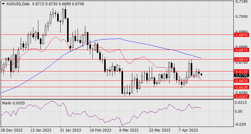 Прогноз по AUD/USD на 20 апреля 2023 годаИнстаФорекс - Instaforex, 2 года назад AUD/USD На текущий момент, так как цена закреплена выше индикаторной линии баланса, настрой тенденции тяготеет если не к покупкам, то к боковому движению. Также и осциллятор Марлин ещё не покинул зону роста.