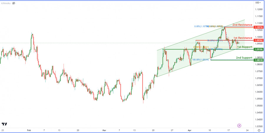 EUR/USD: ожидается дальнейшее развитие восходящей тенденции. Прогноз на 20 апреля 2023ИнстаФорекс - Instaforex, 2 года назад На 4-часовом графике пара EUR/USD торгуется с бычьи уклоном. В настоящее время цена находится в рамках восходящего канала, что указывает на возможность продолжения восходящей тенденции. Если бычий импульс сохранится, цена может пробить 1-й уровень сопротивления и направиться ко 2-му уровню сопротивления. Первый уровень поддержки на отметке 1.09 является важным уровнем, за которым следует следить, так как он совпадает с 50% уровнем коррекции Фибоначчи. Цена может встретить поддержку на этом уровне и изменить направление движения. Второй уровень поддержки, который также следует учитывать, расположен на отметке 1.08 и представляет собой уровень свинг-лоу. С другой стороны, 1-й уровень сопротивления на отметке 1.1020 соответствует 100% проекции Фибоначчи. Если цене удастся пробить этот уровень сопротивления, она может направиться ко 2-му уровню сопротивления 1.1079, который совпадает с уровнем коррекции Фибоначчи 38.20%. Эти уровни сопротивления могут ограничить восходящее движение цены. Материал предоставлен компанией InstaForex - www.instaforex.com |