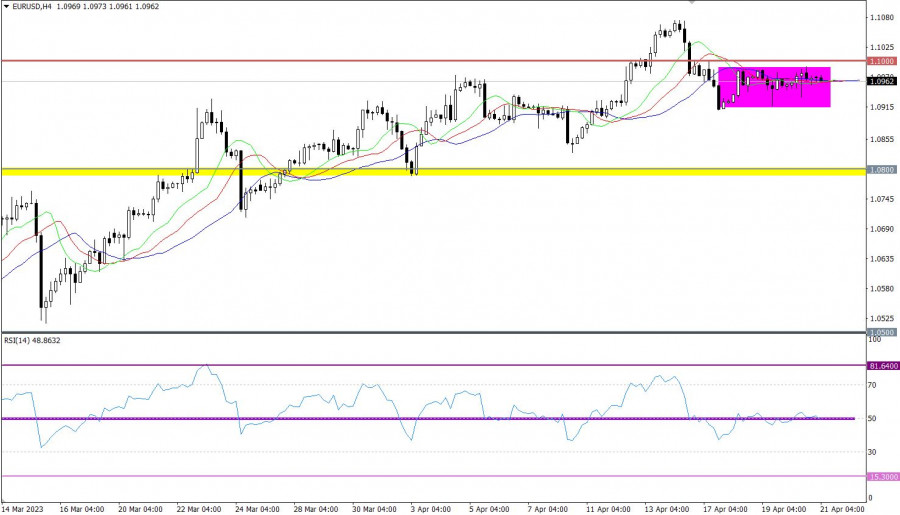 Горящий прогноз по EUR/USD от 21.04.2023ИнстаФорекс - Instaforex, 2 года назад Создается впечатление, что положение дел на американском рынке труда несколько отличается от имевших место предположений. Причем не в лучшую сторону. Ведь число повторных заявок на пособия по безработице возросло сразу на 61 тыс. А это очень много. И при таком росте нет никакого смысла даже рассматривать первичные обращения, число которых увеличилось всего на 5 тыс. Достаточно того, что оно растет. Но самое удивительное, что несмотря на это рынок не сдвинулся с места. Конечно можно попытаться связать это с заявлениями представителей Федеральной Резервной Системы, которые чуть ли не прямым текстом намекнули на необходимость дальнейшего роста процентных ставок. Но проблема в том, что подобные заявления прозвучали как минимум часа через три после публикации данных по заявкам на пособия по безработице. Так что по идее мы должны были увидеть сначала рост единой европейской валюты, а затем ее снижение. Но ничего подобного не происходило. Рынок попросту стоял на месте. Число повторных заявок на пособия по безработице (Соединенные Штаты): Судя по всему дело в совокупности факторов. Одни указывают на ухудшение экономической ситуации, и следовательно на ослабление доллара. Другие же на необходимость ужесточения монетарной политики Федеральной Резервной Системы, и соответственно укрепление доллара. Причем ни один из этих фактором не преобладает. Они буквально нивелируют друг друга, и инвесторам крайне трудно сделать хоть какие-то выводы. По этой причине, публикуемые сегодня предварительные оценки индексов деловой активности врядли как-то повлияют на ситуацию. Тем более, что в зоне евро ожидается рост производственного индекса, при снижении индекса деловой активности в сфере услуг. Так что и тут разнонаправленный характер. Правда в Соединенных Штатах прогнозы носят исключительно негативный характер, так как снизиться должны все без исключения индексы деловой активности. Но не стоит забывать, что именно индекс деловой активности в сфере услуг имеет приоритетное значение, так как на сферу услуг приходиться гораздо большая часть экономики, нежели на промышленность. И в Европе, и в Соединенных Штатах они должны снизиться. Следовательно, делать какие-то далеко идущие выводы довольно трудно. В лучшем случае мы увидим сначала снижение единой европейской валюты, а затем ее рост. Но сами движения будут достаточно скромными. И вполне вероятно, что возможно полное повторение вчерашнего сценария, и топтание на месте продлиться в течение всего торгового дня. Пара EURUSD с начало торговой недели движется чуть ниже контрольного уровня 1.1000 имея зацикленную амплитуду в 50-70 пунктов. Фактически на рынке имеет место застой, который с точки зрения технического анализа может быть классифицирован как процесс накопления торговых сил. RSI H4 движется вдоль среднего уровня 50, что подтверждает стадию флэта. В дневном периоде RSI движется в верхней области индикатора 50/70, что указывает на среднесрочный восходящий тренд. Скользящие линии MA на Alligator H4 имеют множество переплетений друг с другом, что соответствует сигналу о застое. Alligator D1 сигнализирует о восходящем тренде, линии MA направлены вверх. Ожидания и перспективы В данной ситуации тактика работы при застое остается прежней. Участники рынка