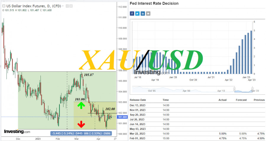 XAU/USD: на юг или на север?ИнстаФорекс - Instaforex, 2 года назад В первой половине сегодняшнего торгового дня доллар пытается развить восходящую динамику, причем она происходит, несмотря на отсутствие позитивных для доллара драйверов. Так, участники рынка в целом негативно отреагировали на опубликованный вчера еженедельный отчет Минтруда США с данными по числу заявок на пособия по безработице: число первичных заявок выросло на отчетной неделе с 240,0 тыс. до 245,0 тыс., а число повторных - с 1,804 млн до 1,865 млн. Опубликованный вчера же индекс PMI деловой активности в производственном секторе от ФРБ Филадельфии в апреле замедлился с –23,2 до –31,3. В том и другом отчетах реальные показатели оказались хуже ожиданий рынка и прогноза экономистов. Сегодня из США поступит новая порция макростатистики. В 13:45 (GMT) будут опубликованы предварительные индексы деловой активности в производственном секторе и секторе услуг американской экономики (от S&P Global). Если данные окажутся хуже прогноза и предыдущего значения, то доллар, скорее всего, краткосрочно, но резко снизится. Также необходимо учесть, что производственный PMI, согласно данным, находится ниже значения 50, отделяющего рост бизнес- активности от замедления. Предыдущие значения: PMI в производственном секторе 49,2, 47,3, 46,9; PMI в секторе услуг 52,6, 50,6, 46,8. Прогноз 49,0 и 51,5, соответственно. Данные лучше прогноза и предыдущего значения окажут позитивное влияние на доллар и помогут его покупателям закрепиться на достигнутых сегодня рубежах. Однако индексу доллара DXY необходимо преодолеть как минимум 4 локальных уровня сопротивления 102.00, 102.48, 102.74, 103.02, чтобы возобновить позитивную динамику и направиться к локальному максимуму этого года 105.87. Любопытно, что, несмотря на высокие риски рецессии в американской и мировой экономиках и сохраняющуюся высокую инфляцию, золото сегодня снижается в цене, также реагируя на укрепившийся доллар. Возможно, что инвесторы готовятся к предстоящему в начале мая заседания ФРС, начиная понемногу фиксировать прибыль и закрывать часть длинных позиций по золоту. Его котировки очень чувствительны к решениям крупнейших мировых ЦБ, прежде всего ФРС, по процентным ставкам. При ужесточении монетарных условий котировки золота, как правило, снижаются. И наоборот, если на заседании 2 и 3 мая со стороны руководства ФРС поступят сигналы о скорой приостановке процесса ужесточения политики и ее развороте к концу года, то, вероятно, мы вскоре сможем увидеть новые рекордные максимумы в котировках пары XAU/USD и золота, возможно, даже выше абсолютного максимума 2070.00 долларов за унцию, достигнутого в марте этого года. С технической же точки зрения пара XAU/USD пробила сегодня важный краткосрочный уровень поддержки 2001.00 и психологически значимый уровень 2000.00 и снижается в сторону минимума этой недели 1970.00. Если этот рубеж будет пройден, то максимальным достижением продавцов может стать, по нашему мнению, взятие уровней поддержки 1964.00, 1957.00. Лишь при пробое уровня поддержки 1944.00 можно будет задуматься о коротких позициях по золоту и паре XAU/USD (более подробно см. в XAU/USD: сценарии динамики на 21.04.2023). Если же опасения инвесторов подтвердятся, и они сочтут решение ФРС на заседании в мае мягким, а также если в сопутствующих комментариях ее руководителей и в заявлениях Пауэлла будут содержаться намеки о необходимости п