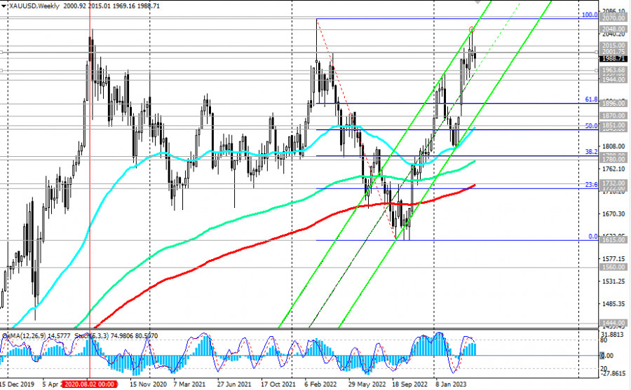 XAU/USD: сценарии динамики на 21.04.2023ИнстаФорекс - Instaforex, 2 года назад Как мы отметили в нашем сегодняшнем «Фундаментальном анализе», котировки золота снижаются сегодня, причем в ситуации остающейся высокой инфляции, политической и экономической неопределённости и на фоне ожиданий паузы в цикле повышения процентных ставок со стороны ФРС. Сильный бычий импульс в паре XAU/USD сохраняется, удерживая ее в зоне психологически значимой отметки 2000.00 долларов за унцию. Пара торгуется на бычьем рынке, выше ключевых уровней поддержки 1732.00 (ЕМА200 на недельном графике), 1780.00 (ЕМА144 на недельном графике), 1851.00 (ЕМА200 на дневном графике), 1870.00 (ЕМА144 на дневном графике). Пробой недавнего локального максимума 2015.00 подтолкнет пару в сторону рекорда 2070.00 долларов за унцию, зафиксированного в марте прошлого года. А самым ранним сигналом для наращивания длинных позиций по паре может стать пробой уровня сопротивления 2000.00 и краткосрочного уровня сопротивления 2002.00 (ЕМА200 на 1-часовом графике). В альтернативном сценарии XAU/USD продолжит снижение. Сигналом для открытия коротких позиций станет пробой локального уровня поддержки 1982.00 с целями на уровнях поддержки 1964.00, 1957.00. Лишь при пробое уровня поддержки 1944.00 (ЕМА50 на дневном графике) можно будет всерьёз задуматься о коротких позициях по золоту и паре XAU/USD. Лишь пробой ключевых уровней поддержки 1870.00, 1851.00, 1843 (уровень Фибоначчи 50,0% в волне нисходящей коррекции с ее пика на отметке 2070.00 к ее минимуму 1615.00) может повысить риски слома долгосрочного бычьего тренда. *) об особенностях торговли XAU/USD см. также XAU/USD: валютная пара (характеристики, рекомендации **) о важных событиях предстоящей недели см. в Важнейшие экономические события недели 24.04.2023 – 30.04.2023 Уровни поддержки: 1982.00, 1964.00, 1957.00, 1944.00, 1896.00, 1870.00, 1851.00, 1843.00, 1800.00 Уровни сопротивления: 2000.00, 2002.00, 2015.00, 2048.00, 2070.00 ***) https://t.me/fxrealtrading Материал предоставлен компанией InstaForex - www.instaforex.com |