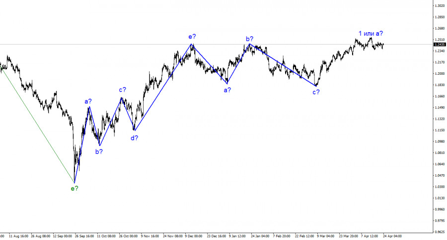 Анализ GBP/USD. 24 апреля. Деловая активность в США растет.ИнстаФорекс - Instaforex, 2 года назад По инструменту Фунт/Доллар волновая разметка на данный момент выглядит по-прежнему сложно. В том смысле, что она не выглядит, как классический коррекционный или импульсный участок тренда. Так как пик текущей повышательной волны зашел за пик последней волны b, то весь понижательный участок тренда, состоящий из волн a-b-c, можно считать завершенным. Хоть он и очень слабо похож на участок тренда за тот же временной период в исполнении евровалюты, следует признать, что оба инструмента построили нисходящие трех волновые наборы волн. Если это предположение верно, то сейчас по фунту началось построение нового повышательного участка тренда. Так как, начиная с 8 марта, я могу выделить только одну волну, то есть все основания предполагать, что построение нового участка тренда займет много времени. Я по-прежнему считаю, что оба инструмента должны строить схожие волновые формации. Если это действительно так, то волна 2 или b по фунту может быть протяженной, а в это же время по европейцу может быть построена нисходящая трехволновка. Таким образом, я ожидаю глубокой волны b, как и в случае с построением предыдущей трехволновки. Следовательно, ожидать снижения инструмента можно к отметке 1,1850 или чуть выше. Британца шатает между 24 и 25 фигурами.Курс инструмента Фунт/Доллар в пятницу не изменился. В первой половине дня спрос на британца незначительно снизился, во второй – также повысился. По итогу дня и всей недели инструмент остался на том же месте – около уровня 0,0% по Фибо. В случае с британцем также остается непонятным, завершится ли на текущих отметках построение повышательной волны или же повышательный участок тренда, берущий свое начало предположительно 8 марта, получит ярковыраженный восходящий вид. Экономические данные на прошлой неделе не помогли рынку определиться с ответом на этот вопрос, хотя важных новостей было достаточно много. Особенно в Великобритании, где отчет по инфляции вновь разочаровал, а данные по безработице оказались хуже ожиданий рынка. В пятницу завершали важную неделю для фунта отчеты по деловой активности и розничной торговле. Индексы деловой активности показали ту же самую тенденцию, что и в Евросоюзе. Сфера услуг – выросла, сфера производства – сократилась. Объемы розничной торговли уменьшились на 0,9% м/м и на 3,1% г/г. Для инфляции это хорошо, так как цены растут меньше, если спрос снижается. Но сам показатель инфляции пока практически не снижается и продолжает уверенно находиться выше отметки 10%. Экономическая статистика пятницы могла понизить спрос на фунт, что было бы весьма кстати для перспектив текущей волновой разметки, но во второй половине дня рынок нашел все-таки поводы для покупок, хотя американские отчеты по деловой активности оказались сильнее ожиданий. Общие выводы.Волновая картина инструмента Фунт/Доллар предполагает построение новой нисходящей волны. Волновая разметка сейчас неоднозначная, как и новостной фон. Я не вижу факторов, которые поддерживали бы британца в долгосрочном плане, а волна b может получиться очень глубокой. Я считаю, что сейчас более вероятно снижение инструмента, так как все волны последнего времени были примерно одинаковыми по размеру. Считаю, что торговать сейчас можно от отметки 1,2440, что с