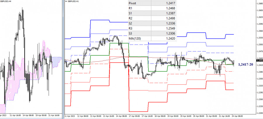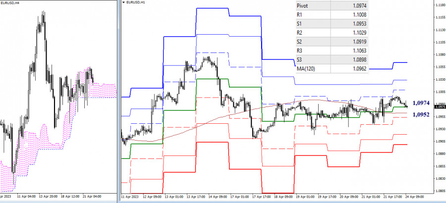 EUR/USD и GBP/USD 24 апреля – технический анализ ситуацииИнстаФорекс - Instaforex, 2 года назад EUR/USD Старшие таймфреймы Прошлая рабочая неделя не смогла добиться результатов в масштабности движения или проявить себя в непосредственной поддержке одной из сторон. Наблюдалась консолидация, центром притяжения которой является дневной краткосрочный тренд, сегодня он расположен на 1,0993. Создаётся впечатление, что потенциал игроков на повышение на данном этапе исчерпан. Возможно, пара в ближайшее время будет искать новую точку опоры. Оказать поддержку, в случае снижения, способны следующие рубежи 1,0901 (месячный среднесрочный тренд + дневной Фибо Киджун) – 1,0854 (дневной среднесрочный тренд) – 1,0796 (недельный краткосрочный тренд + заключительный уровень дневного золотого креста). Повышательными ориентирами в сложившейся ситуации продолжают оставаться максимальный экстремум текущей коррекции (1,1076) и месячное сопротивление (1,1221). Н4 – Н1 Дневная консолидация привела к тому, что пара закручивается вокруг ключевых уровней, развивая боковое движение. Сегодня ключевые уровни младших временных интервалов объединяют свои усилия в районе 1,0974-52 (центральный Пивот уровень + недельная долгосрочная тенденция). Тем самым доминирует неопределённость. В случае смены настроений и развития направленного движения внутри дня значение могут иметь классические Пивот-уровни сопротивления 1,1008 – 1,1029 – 1,1063 и поддержки 1,0953 – 1,0919 – 1,0898. *** GBP/USD Старшие таймфреймы Всю прошлую неделю фунт консолидировался под сопротивлением дневного краткосрочного тренда (1,2449). Игроки на повышение не смогли продолжить подъём и исполнить цель на пробой дневного облака (1,2502 – 1,2580), поэтому данная задача сохраняет своё значение. Если сейчас посмотреть на основные ориентиры игроков на понижение, то при выходе из зоны консолидации им нужно будет ликвидировать дневной золотой крест, чьи поддержки мешают продвижению игроков на понижение (1,2400 – 1,2355 – 1,2311). Далее внимание сместится на тестирование и пробой поддержек месячного среднесрочного тренда (1,2302) и недельного краткосрочного тренда (1,2173). Н4 – Н1 Неопределённость старших таймов привела к тому, что ключевые уровни младших временных интервалов сегодня практически соединились в районе 1,2417-20 (центральный Пивот уровень + недельная долгосрочная тенденция). Если в ближайшее время случится активность одной из сторон, то усиление бычьих настроений будет пролегать внутри дня через сопротивления классических Пивот уровней (1,2468 – 1,2498 – 1,2549), а усилению медвежьих настроений будет способствовать покорение поддержек классических Пивот уровней (1,2387 – 1,2336 – 1,2306). *** При техническом анализе ситуации использованы: старшие таймфреймы – Ichimoku Kinko Hyo (9.26.52) + уровни Фибо Киджун; младшие таймфреймы – Н1 – Pivot Points (классические) + Moving Avarage 120 (недельная долгосрочная тенденция). Материал предоставлен компанией InstaForex - www.instaforex.com |