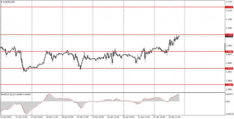 Во вторник никаких важных макроэкономических публикаций не запланировано ни в Евросоюзе, ни в США. Из второстепенных публикаций можно отметить разве что продажи новых домов за март в США, но этот отчет может спровоцировать реакцию пунктов на 20-30 не более. И то, при очень удачном раскладе. Таким образом, волатильность во вторник может быть опять низкой, если только в распоряжение трейдеров не попадут какие-либо данные, которые даже не значатся в календаре. Например, как в понедельник, может состояться выступление какого-либо высокопоставленного чиновника из ЕЦБ или ФРС. Разбор фундаментальных событий: