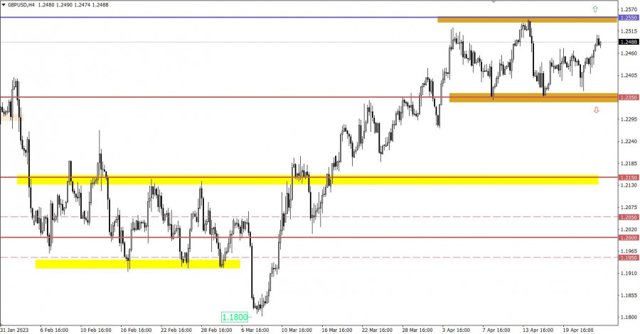 Сегодня ожидается публикация статистических данных по рынку недвижимости в Соединенных Штатах. Прогнозы говорят о замедлении темпов роста цен на жилье и о снижении продаж новых домов. Эти данные могут привести к незначительному ослаблению доллара. Торговый план - ЕВРО/ДОЛЛАР 25 апреляВероятно, ценовой диапазон 1.1060/1.1080 окажет негативное влияние на объем длинных позиций, что может привести к сокращению позиций и откату цены. Тем не менее возврат котировки в район максимума среднесрочного тренда указывает на продолжающуюся восходящую тенденцию среди участников рынка. Следовательно, удержание цены выше уровня 1.1100 может привести к продолжению восходящего цикла. Торговый план - ФУНТ/ДОЛЛАР 25 апреляПоскольку движение находится в рамках диапазона, стратегия работы остается неизменной: отскок или пробой относительно границ флэта. Чтобы прояснить вышесказанное: Тактика отскока используется, когда цена приближается к границе диапазона. Метод пробоя является основной стратегией, поскольку он может указать на будущее направление цены. Что отражено на торговых графиках?