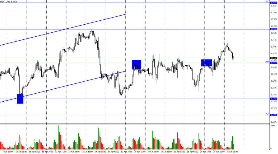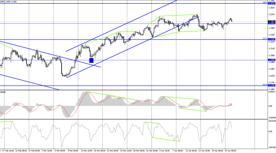 GBP/USD. 25 апреля. Нескучный понедельник для британцаИнстаФорекс - Instaforex, 2 года назад Добрый день, уважаемые трейдеры! На часовом графике пара GBP/USD в понедельник выполнила новый разворот в пользу британца и закрепление над коррекционным уровнем 100,0%, 1,2447. Таким образом, процесс роста может быть продолжен в направлении следующего уровня 1,2546. Закрытие под уровнем 1,2447 сработает в пользу валюты США и некоторого падения в направлении 1,2380-1,2400. После того как трейдеры покинули восходящий трендовый коридор, значимого падения пары мы так и не увидели. Для меня это достаточно неоднозначный момент. Иногда такое случается, но в нашем случае такое начало происходить слишком часто. Трейдеры-медведи упорно не желают заходить в рынок, поэтому максимум, на что способна пара, это лишь небольшие откаты вниз. В понедельник информационный фон отсутствовал для британца и американца. Тем не менее фунт опять прибавил в цене. Возможно, он просто следовал за европейской валютой, что бывает очень часто, так как это две братские валюты, а экономики Великобритании и ЕС тесно связаны друг с другом. Но все же и у европейца было немного причин показывать рост в понедельник. Возможно, трейдеры уже начинают готовиться к заседаниям центральных банков, которые состоятся на следующей неделе. Однако на следующей неделе состоится только заседания ФРС, а заседание Банка Англии – еще через неделю. Странно, если трейдеры начали покупать фунт сейчас, за две недели до главного события. Ведь от FOMC они абсолютно точно представляют, чего ожидать. Повышение процентной ставки на 0,25% – и ничего больше. FOMC не возьмет паузу в мае, но и не повысит ставку сильнее, чем на 0,25%. Это решение уже давно известно и учтено. С Банком Англии куда сложнее, но и заседание еще нескоро. Я по-прежнему считаю, что весомых причин расти у фунта немного. На 4-часовом графике пара выполнила разворот в пользу доллара США и закрепление под восходящим трендовым коридором. Я считаю, что выход из коридора является очень важным графическим сигналом, который указывает на смену настроения на «медвежье». «Бычья» дивергенция позволила выполнить некоторый рост, но в последние недели движение пары можно охарактеризовать, как «горизонтальное». Закрытие под 1,2441 сработает в пользу американской валюты и нового падения в направлении уровня Фибо 127,2%, 1,2250. Отчет Commitments of Traders (COT): Настроение категории трейдеров «Non-commercial» за последнюю отчетную неделю изменилось на более «бычье». Количество Long-контрактов на руках спекулянтов сократилось на 1094 единицы, а количество Short – на 4794. Общее настроение крупных игроков изменилось на «бычье», но количество Long и Short-контрактов сейчас практически одинаковое – 54 тысячи и 52 тысячи соответственно. Настроение на рынке по британцу долгое время оставалось «медвежьим», но все это время быки усиливали свои позиции, а британец активно рос. В данное время графический анализ указывает на возможное падение, но оно может быть недолгим. Таким образом, перспективы фунта остаются неплохими, но в ближайшее время вполне можно ожидать его падения. Календарь новостей для США и Великобритании: США – Число выданных разрешений на строительство (13-30 UTC). США – Продажи нового жилья (14-00 UTC). Во вторник календари экономических событий содержат в себе лишь две записи в США, но они не являются важными. Влияние информ
