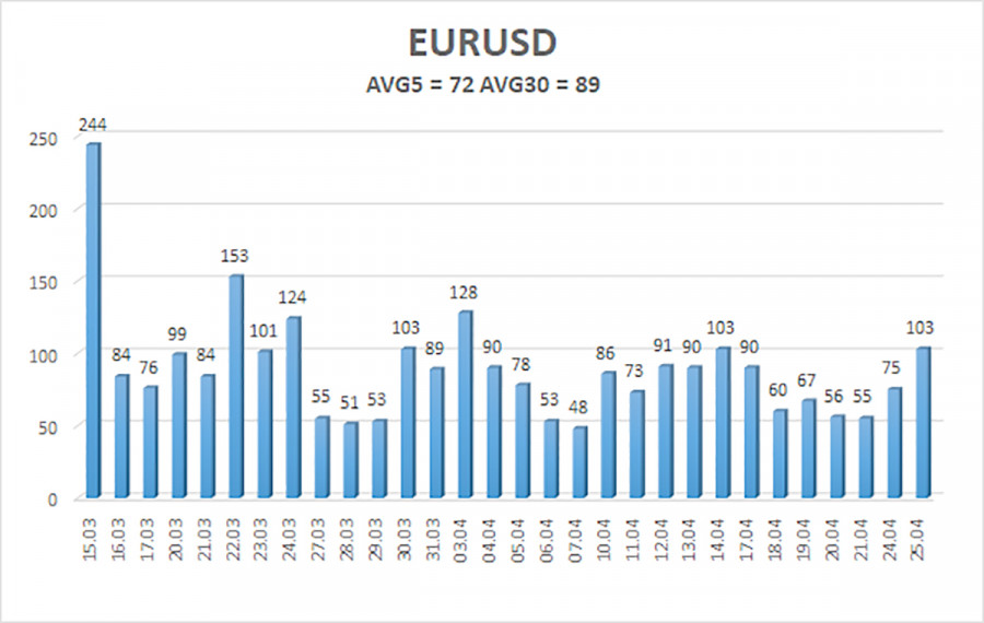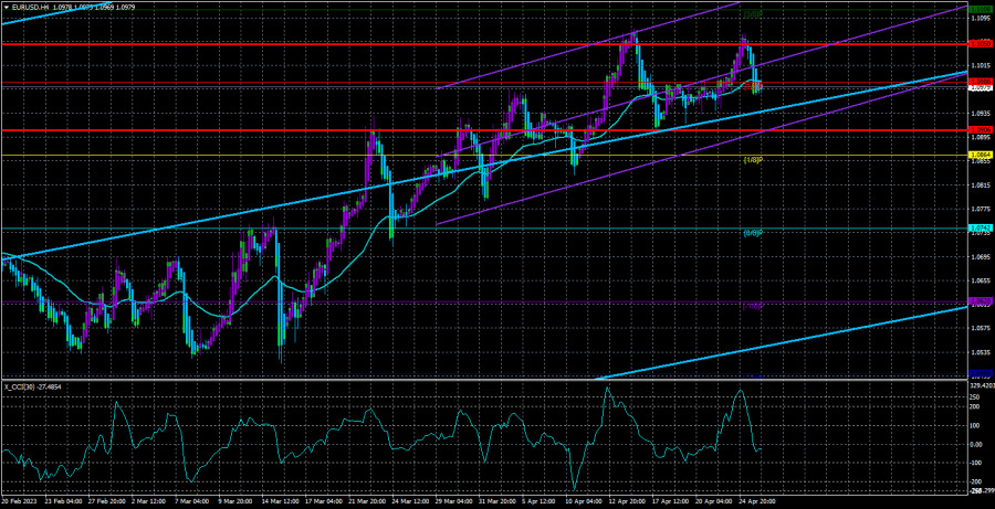 Обзор пары EUR/USD. 26 апреля. Перекупленность евровалюты зашкаливает.ИнстаФорекс - Instaforex, 2 года назад Валютная пара EUR/USD во вторник опять неожиданно для многих показала довольно мощное падение. В самом начале дня пара вышла к прошлому локальному пику около уровня 1,1060, но тут же развернулась вниз и упала в течение дня почти на 100 пунктов. Естественно, что никаких макроэкономических и фундаментальных оснований для этого у нее не было. В течение вчерашнего дня вообще не было никаких важных событий и публикаций. Поэтому абсолютно логичный, исходя из общей картины положения вещей, рост доллара тоже выглядел странно. Мы продолжаем выступать за то, что американская валюта должна дорожать, при чем уже сильно дорожать. Индикатор CCI второй раз зашел в область перекупленности(выше отметки +250), что опять-таки случается крайне редко. То есть у нас есть уже два сильных сигнала на продажу и сигналы о сильной перекупленности пары. Это то, о чем мы говорили постоянно в последние недели. Европейская валюта растет без оснований, трейдеры большинство новостей и публикаций трактуют либо в пользу евровалюты, либо как им вздумается. Макроэкономический фон для доллара не слабее, чем для евровалюты. Ставка ФРС все еще растет, как и ставка ЕЦБ, но первая ставка остается выше, а инфляция падает быстрее. В общем, с нашей точки зрения, сейчас имеется гораздо больше оснований для роста доллара, чем для роста евро после того, как он уже вырос почти на 600 пунктов. На 24-часовом ТФ по-прежнему непонятно, продолжится ли рост? Преодоление важного уровня Фибоначчи 50,0% свидетельствует о желании трейдеров продолжать покупки, но два сигнала о перекупленности на 4-часовом ТФ не могут быть проигнорированы. Мы уже говорили ранее, что чисто теоретически рынок может вообще все сигналы на продажу игнорировать, а курс пары зависит только от действий участников рынка, а не от технического анализа. Теханализ лишь визуализирует происходящее на рынке, но не управляет им. Однако, если технический анализ не дает возможности прогнозировать, то возникает вопрос, зачем он тогда вообще нужен? Сейчас мы именно в такой ситуации – все сигналы на продажу по-прежнему не отрабатываются, а евровалюта сохраняет высокую вероятность обвала в любой момент. Филипп Лейн не удивил рынок.Что сказать о вчерашнем дне, если ни одного важного события в течение оного не было? Да, можно отметить выступление Филиппа Лейна, который повторил в сотый раз то, что рынок уже давно знает. После майского заседания ЕЦБ будет внимательно изучать поступающую информацию и повышать ставку только в соответствии с ней. То есть ставка ЕЦБ будет продолжать расти, но до какого значения и какими темпами, представители центробанка сказать не могут. В принципе, тоже самое сейчас говорят и представители ФРС, хотя там гораздо больше «голубиных» заявлений о прекращении ужесточения уже в ближайшее время. Но следует помнить, что инфляция в США упала уже до 5%, а эффект от повышения ставки может наблюдаться в срок до 18 месяцев. Поэтому для ФедРезерва действительно настало время паузы. А для ЕЦБ – нет, но у ЕЦБ гораздо менее обширные возможности по повышению ставки. Европейская экономика продолжает балансировать на грани отрицательного роста, а рецессии никто не хочет допустить. Мы по-прежнему считаем, что европейский регулятор повысит ст