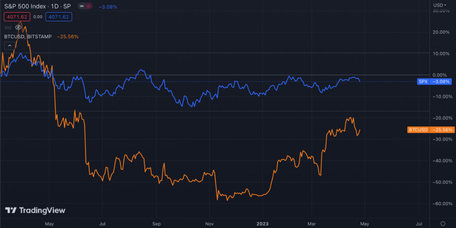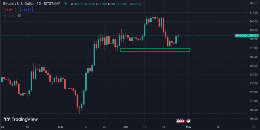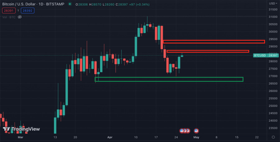Биткоин восстановился на фоне падения SPX и проблем банка FRCИнстаФорекс - Instaforex, 2 года назад За последние несколько недель Биткоину удалось достичь локального максимума на отметке $31k. Достижение данного уровня спровоцировало ответную реакцию продавцов и рост медвежьих настроений. Вследствие этого цена BTC сформировала ложный пробой уровня $30k. Далее ситуация усугублялась и криптовалюта совершила нисходящий пробой уровня $28,5k, который выступал важным коридором накопления монет BTC. Актив продолжал снижение к уровням $27k, что создавало угрозу для ретеста $26k и значительного усугубления коррекции. Банковский кризис 2.0Однако дальнейшим коррекционным планам медведей не суждено было сбыться. В США набирает обороты второй этап банковского кризиса, вследствие которого First Republic Bank потерял 50% стоимости акций. С начала 2023 года банк потерял 93% стоимости акций. На фоне этого инвесторы стремительно вывели $100 миллиардов с банковских счетов FRC. Федрезерв уже заявил, что готов предоставить ликвидность банку, а власти США готовы национализировать компанию. По состоянию на 26 апреля вероятность повышения ставки на 0,25% в следующую среду составляет 86%. Благодаря внезапному падению котировок FRC индекс SPX отреагировал падением. Актив совершил медвежий пробой уровня $4100 и снизился до области $4000-$4050. При этом BTC отреагировал локальным ростом и восстановился выше $28k. Банковский кризис в начале весны 2023 года спровоцировал реакцию ФРС и запуск локальной программы стимулирования. В результате BTC показал рост около 50% от ценового минимума. Вполне вероятно, что второй этап банковского кризиса спровоцирует ослабление монетарной политики и увеличение объемов ликвидности. При этом сообщается, что менее 35% акций, входящих в SPX, превосходят индекс за последние 20 дней. Ситуация схожа с пиком бума дот-комов и свидетельствует о слабости быков. При этом WSJ сообщает, что инсайдеры значительно увеличили покупки акций своих компаний в марте. Анализ BTC/USDБиткоин отреагировал на последние события локальным ростом и восстановился выше уровня $28,3k. Актив находится в шаге от окончательного закрепления выше уровня $28,5k, который является ключевой зоной поддержки для возобновления восходящего движения в краткосрочной перспективе. Однако уровень $28,5k является сильной зоной сопротивления, что уже повлияло на ослабление бычьего импульса. Технические метрики достигли экватора бычьей зоны, но впоследствии перешли к флэтовому движению, что указывает на силу продавцов. При этом ожидается, что в ближайшем будущем бычьи настроения по BTC будут расти. Помимо растущего интереса к Bitcoin на фоне проблем в банковской системе, Bloomberg сообщает, что халвинг BTC может привести к росту цены до $50k. Также в Standard Chartered полагают, что криптовалюта может достичь $100k к завершению 2024 года. ИтогиАктив позитивно отреагировал на кризисные новости в банковской системе США. Если ситуация продолжит усугубляться, то BTC продолжит расти в цене и привлекать крупных инвесторов. Ближайшими целями актива для возобновления восходящего движения является отметка $28,5k и $29,1k. Учитывая усугубление ситуации с ликвидностью, Bitcoin продолжит оставаться важным сберегательным активом. Материал предоставлен компанией InstaForex - www.instaforex.com |