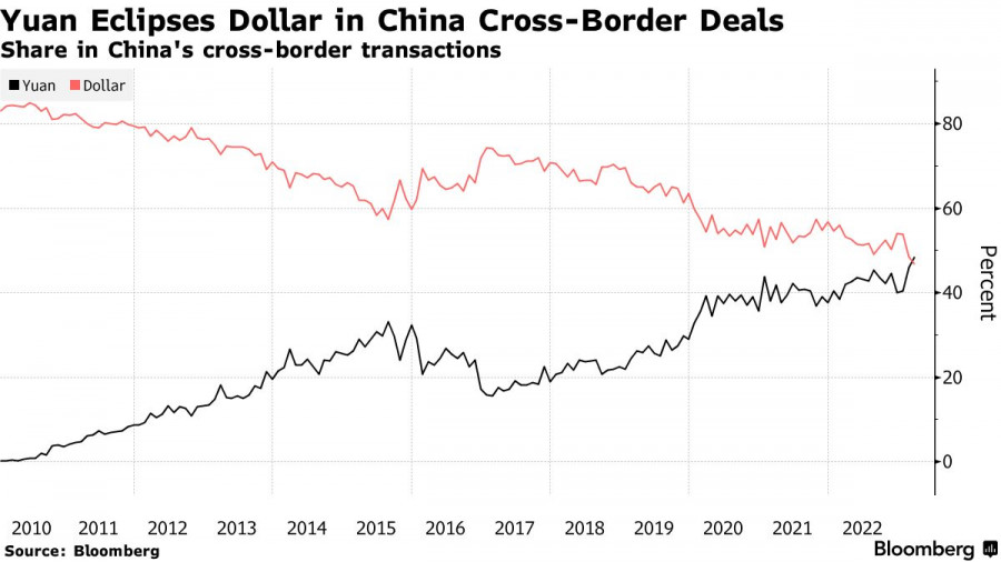Китай продолжает сокращать зависимость от американского доллараИнстаФорекс - Instaforex, 2 года назад Согласно последним данным, Китай преодолел еще одну веху в своем стремлении уменьшить зависимость от доллара, поскольку использование юаня в его международных транзакциях впервые в марте этого года превысило использование доллар США. Доля местной валюты в международных платежах выросла до рекордных 48% на конец месяца с почти нуля в 2010 году. Такие цифры предоставлены исследованием Bloomberg Intelligence со ссылкой на данные Государственного управления иностранной валюты Китая. Цифры показали, что доля американского доллара в общем объеме расчетов снизилась до 47% с 83% за тот же период. Очевидно, что договоренности о взаиморасчетах Китая с Россией в юанях за энергоносители наверняка внесла свой определенный вклад в общий коэффициент, который рассчитывается на основе объема всех видов транзакций, включая торговлю ценными бумагами. Единственное, что не отражает этот коэффициент – это транзакции, используемые остальным миром — по данным SWIFT, доля юаня в мировых расчетах в марте практически не изменилась и составила 2,3%. Как отмечают некоторые специалисты, рост доли юаня в расчетах позволяет местным компаниям снизить риски валютных колебаний. Как считают в государственном валютном управлении Китая, страна и дальше будет расширять расчеты в юанях по международным договорам. Такие планы стоят перед руководством Госсовета КНР, что позволит еще активней развивать внешнюю торговлю. «Интернационализация юаня ускоряется, поскольку другие страны ищут альтернативную платежную валюту для диверсификации рисков, а доверие к Федеральной резервной системе уже не так хорошо, как раньше», - отмечено в заявлении. Что касается технической картины EURUSD, то у быков остаются все шансы на продолжение роста и очередное обновление максимумов. Для этого нужно оставаться выше 1.0950 и забирать под контроль 1.1000. Это позволит выбираться за пределы 1.1035. Уже от этого уровня можно забраться на 1.1080. В случае снижения торгового инструмента, лишь в районе 1.0950 я ожидаю каких-либо действий со стороны крупных покупателей. Если там никого не будет, было бы неплохо дождаться обновления минимума 1.0910, либо открывать длинные позиции от 1.0870. Что касается технической картины GBPUSD, то несмотря на коррекцию, быки продолжают контролировать рынок. Для дальнейшего развития тренда необходимо забирать 1.2450. Лишь провыв этого уровня укрепит надежду на дальнейшее восстановление в район 1.2480, после чего можно будет заговорить и о более резком рывке фунта вверх в район 1.2520. В случае падения пары медведи попытаются забрать контроль над 1.2410. Если это удастся сделать, пробой этого диапазона нанесет удар по позициям быков и столкнет GBPUSD к минимуму 1.2380 с перспективой выхода на 1.2340. |