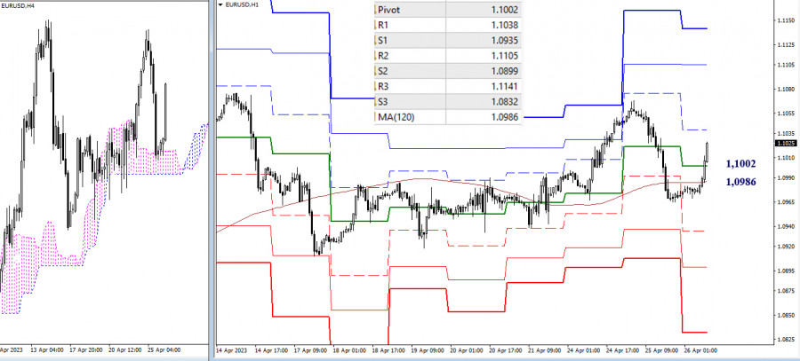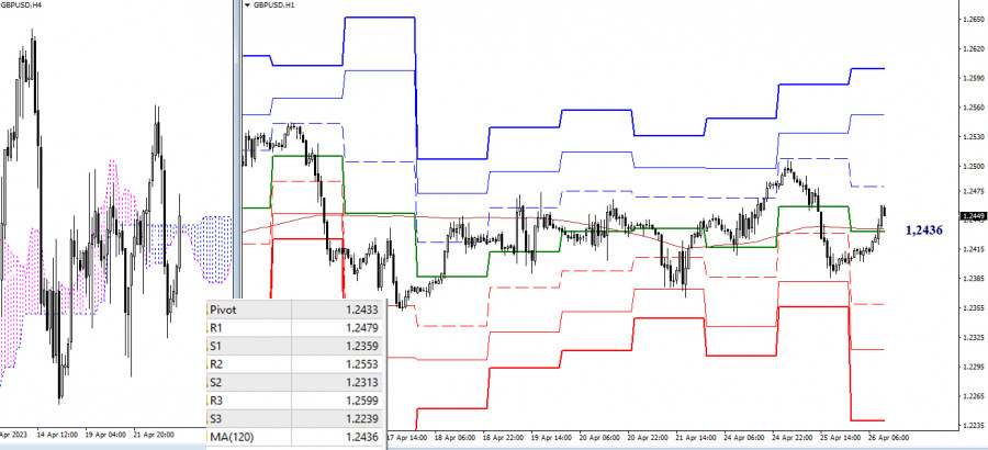 EUR/USD и GBP/USD 26 апреля – технический анализ ситуацииИнстаФорекс - Instaforex, 2 года назад EUR/USD Старшие таймфреймы Игроки на понижение на дневном таймфрейме вновь остановили активность соперника и вернули ситуацию под дневной краткосрочный тренд (1,0993). Возможно, в ближайшее время сохранится неопределённость, с переменными порывами и попытками одной из сторон изменить приоритеты. Повышательными ориентирами в настоящий момент остаются максимальный экстремум (1,1076) и месячное сопротивление (1,1221). Ближайшей наиболее важной поддержкой продолжает служить месячный среднесрочный тренд (1,0901). Н4 – Н1 Вчера игроки на понижение на младших таймах увели рынок под недельную долгосрочную тенденцию, но не удержали пробой ключевого уровня. Сегодня игроки на повышение восстановили позиции, вернув себе поддержку недельной долгосрочной тенденции (1,0986). Продолжение подъёма позволит протестировать сопротивления классических Пивот уровней (1,1038 – 1,1105 – 1,1141). Очередная смена настроений и возврат под ключевой уровень недельной долгосрочной тенденции (1,0986) переключит внутри дня внимание рынка на прохождение поддержек классических Пивот уровней, сегодня они расположены на 1,0935 – 1,0899 – 1,0832. *** GBP/USD Старшие таймфреймы Вчера при тестировании первого целевого ориентира дневной цели на пробой облака Ишимоку (1,2502) фунт постигла очередная неудача. Игроки на понижение вернули рынок под дневной краткосрочный тренд (1,2449) в зону прежней консолидации. В результате расположение и значение основных ориентиров и задач не изменилось. Игрокам на повышение на данном участке по-прежнему важно исполнить цель на пробой дневного облака (1,2580). При этом для игроков на понижение сохраняется задача по ликвидации дневного золотого креста (1,2405 – 1,2367 – 1,2325), с последующим возвратом к поддержке месячного среднесрочного тренда (1,2302). Н4 – Н1 На младших таймах доминирует неопределённость. Пара продолжает закручиваться вокруг ключевых уровней. Сегодня ключевые уровни практически соединились – 1,2433 (центральный Пивот уровень дня) и 1,2436 (недельная долгосрочная тенденция). Ориентирами для подъёма внутри дня служат сопротивления классических Пивот уровней, которые сегодня расположены на 1,2479 – 1,2553 – 1,2599, а ориентирами для снижения являются поддержки классических Пивот уровней, они сейчас находятся на 1,2359 – 1,2313 – 1,2239. *** При техническом анализе ситуации использованы: старшие таймфреймы – Ichimoku Kinko Hyo (9.26.52) + уровни Фибо Киджун; младшие таймфреймы – Н1 – Pivot Points (классические) + Moving Avarage 120 (недельная долгосрочная тенденция). Материал предоставлен компанией InstaForex - www.instaforex.com |