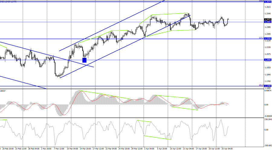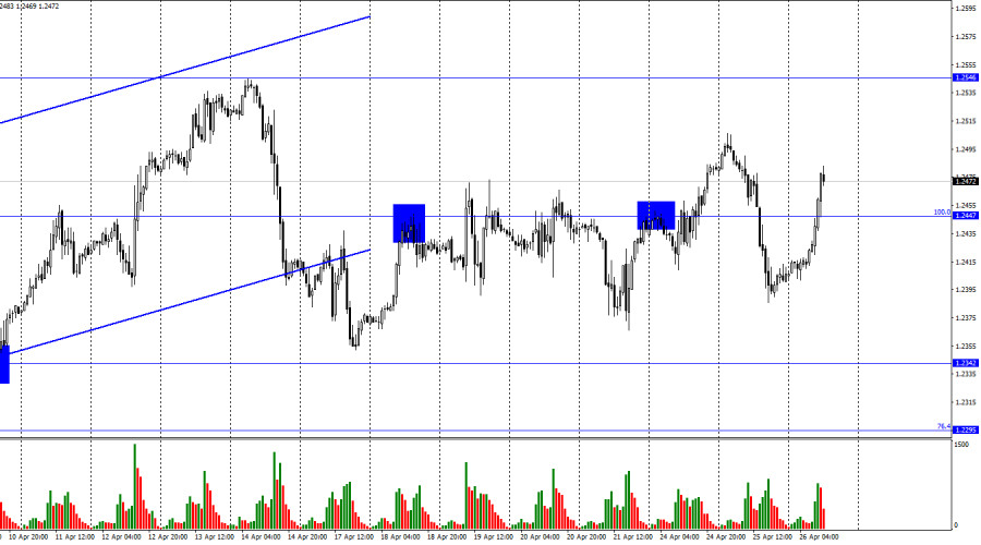 GBP/USD. 26 апреля. Британец не знает, что делать перед заседаниями центральных банковИнстаФорекс - Instaforex, 2 года назад Добрый день, уважаемые трейдеры! На часовом графике пара GBP/USD во вторник выполнила сильное падение в течение дня, но потом развернулась в пользу британца и начала не менее сильный рост. На момент написания статьи еще 12 часов торгов впереди до следующего дня, но фунт стерлингов уже вырос почти на 100 пипсов. Уровень коррекции 100,0%, 1,2447, сейчас не является источником сигналов. Быки и медведи перетягивают канат, и никто не обладает решающим преимуществом. Сейчас пара растет, во второй половине дня она может уже падать. Вчера информационный фон для британца и американца был очень слабым. Всего лишь два отчета в течение дня были доступны для трейдеров, и я бы даже не обращал на них внимание читателей, если бы не сильное падение американца. Количество разрешений на строительство в США составило 1,43 миллиона (чуть выше ожиданий), а количество продаж новых домов – 0,683 миллиона, что тоже чуть выше ожиданий. Можно было бы подумать, что эти два отчета и поддержали медведей, но в реальности они вышли уже тогда, когда пара большую часть своего пути вниз уже прошла. Эти отчеты не являются важными, а их значения не могли быть восприняты трейдерами слишком эмоционально. Таким образом, мое мнение, что они никакого влияния на настроение трейдеров не оказали. Учитывая то, что в понедельник и вторник обе пары торговались довольно активно, а по-настоящему важных событий в эти дни не было, я делаю вывод, что трейдеры сейчас вообще не обращают внимание на информационный фон, так как его практически нет. Выходит, что сильные движения на рынке – это чистая импровизация, которую нельзя было предугадать. И сегодня в первой половине дня уже видно, что такая картина сохраняется. Информационный фон по-прежнему отсутствует, а пара уверенно растет. На 4-часовом графике пара выполнила разворот в пользу доллара США и закрепление под восходящим трендовым коридором. Я считаю, что выход из коридора является очень важным графическим сигналом, который указывает на смену настроения на «медвежье». «Бычья» дивергенция позволила выполнить некоторый рост, но в последние недели движение пары можно охарактеризовать как «горизонтальное». Закрытие под 1,2441 сработает в пользу американской валюты и нового падения в направлении уровня Фибо 127,2% - 1,2250. Отчет Commitments of Traders (COT): Настроение категории трейдеров «Non-commercial» за последнюю отчетную неделю изменилось на более «бычье». Количество Long-контрактов на руках спекулянтов сократилось на 1094 единицы, а количество Short – на 4794. Общее настроение крупных игроков изменилось на «бычье», но количество Long и Short-контрактов сейчас практически одинаковое – 54 тысячи и 52 тысячи соответственно. Настроение на рынке по британцу долгое время оставалось «медвежьим», но все это время быки усиливали свои позиции, а британец активно рос. В данное время графический анализ указывает на возможное падение, но оно может быть недолгим. Таким образом, перспективы фунта остаются неплохими, но в ближайшее время вполне можно ожидать его падения. Календарь новостей для США и Великобритании: США – Базовые заказы на товары длительного пользования (12-30 UTC). В среду календари экономических событий содержат в себе лишь одну запись в США, но она не являются важной. В