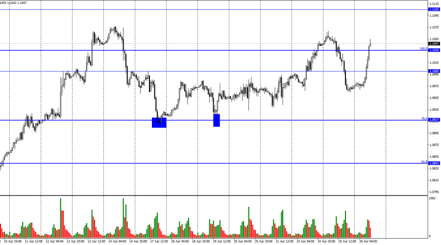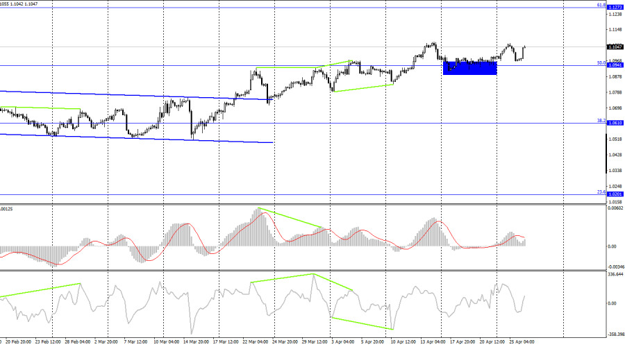 EUR/USD. 26 апреля. Евро потерял связь с реальностьюИнстаФорекс - Instaforex, 2 года назад Добрый день, уважаемые трейдеры! Пара EUR/USD во вторник выполнила разворот в пользу американской валюты и падение на 100 пипсов. Сегодня ночью был выполнен разворот в пользу валюты ЕС и рост на 80-90 пипсов. В понедельник, напомню, пара тоже показала рост. Таким образом, мы наблюдаем в последние три дня полный бардак на рынке. Быки и медведи перетягивают канат, пара пляшет во все стороны чуть ли не одновременно. Информационный фон привычного характера отсутствует. Первый отчет на этой неделе выйдет лишь сегодня во второй половине дня. На мой взгляд, в данное время ситуация на рынке очень нестабильная, ожидать движения можно в любую сторону с любой силой. Безусловно, при желании можно отыскать новость или событие, которое могло вызвать то или иное движение. К примеру, ночью выступила Джанет Йеллен, которая заявила, что потолок государственного долга США нужно повысить, иначе может произойти технический дефолт. Для тех, кто недавно следит за рынком, сообщу, что такая проблема возникает в Америке с периодичностью раз в полгода. Каждый раз все начинается с выступления министра финансов или других высокопоставленных чиновников, которые требуют от Конгресса повышения лимита госдолга. Потом начинаются месячные торги и дебаты. Обе палаты Конгресса должны большинством одобрить это решение, поэтому одна сторона (республиканцы) старается выиграть как можно больше для себя, если одобрит предложение второй стороны (демократы). В конечном итоге лимит госдолга все равно будет повышен, так как иного пути просто нет, а технический дефолт не выгоден ни республиканцам, ни демократам. Таким образом, никакой проблемы здесь нет, а доллар падает явно не из-за этого события. Вчера он, кстати, показывал уверенный рост, хотя и для этого никакого информационного фона не было. Во второй половине сегодняшнего дня мы вполне можем увидеть уже падение пары. На 4-часовом графике пара выполнила закрепление над боковым коридором, что позволяет рассчитывать на продолжение роста в направлении уровня коррекции 61,8%, 1,1273. Над уровнем коррекции 50,0%,1,0941, также удалось выполнить закрепление, что повышает шансы на дальнейший рост. «Бычья» дивергенция у индикатора CCI аналогично сработала в пользу евро. Новых назревающих дивергенций пока не наблюдается. Отчет Commitments of Traders (COT):