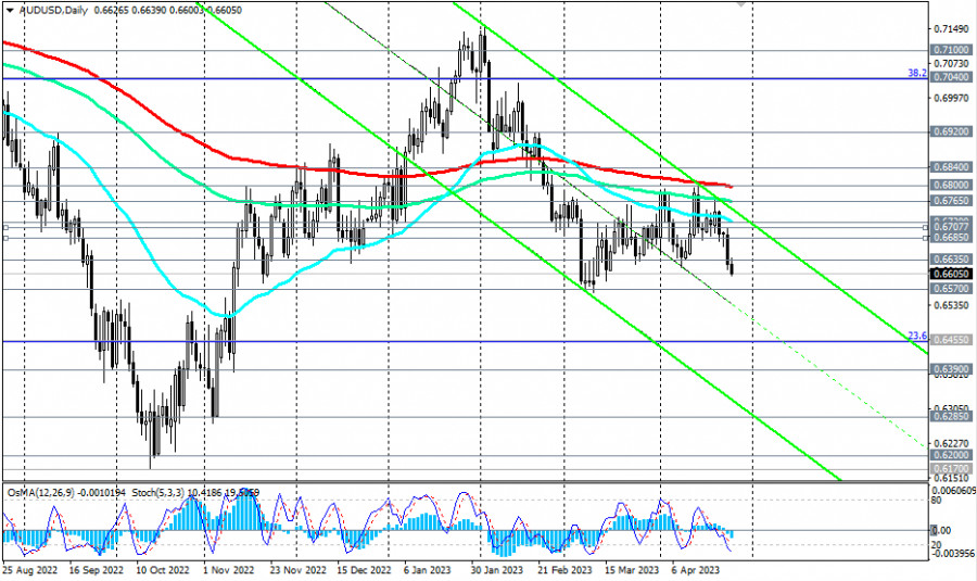 AUD/USD: сценарии динамики на 26.04.2023ИнстаФорекс - Instaforex, 2 года назад Как мы отметили в нашем сегодняшнем Фундаментальном анализе, AUD/USD продолжает торговаться на медвежьем рынке, к тому же неопределённость и неуверенность инвесторов давят на котировки сырьевых валют, в частности на австралийский доллар. На момент публикации данной статьи AUD/USD торговалась вблизи отметки 0.6600, снижаясь в сторону локального уровня поддержки 0.6570. В нашем предыдущем обзоре мы прогнозировали пробой краткосрочного уровня поддержки 0.6706 локального уровня поддержки 0.6685, что стало бы «сигналом для возобновления коротких позиций по паре с ближайшей целью на локальном уровне поддержки 0.6635». Наш прогноз оправдался, движение цены пошло именно по этому сценарию, и теперь «пробой локального уровня поддержки 0.6570 окончательно возродит медвежьи настроения относительно AUD/USD», направив пару внутрь вновь образованного нисходящего канала на дневном графике с нижней границей, проходящей вблизи отметки 0.6300. Технические индикаторы OsMA и Стохастик на дневном и недельном графиках также находятся на стороне продавцов. В альтернативном сценарии пробой локального уровня сопротивления 0.6635 может стать самым первым, быстрым сигналом для покупателей пары, а пробой уровней сопротивления 0.6707, 0.6720 (ЕМА50 на дневном графике) может спровоцировать дальнейший рост AUD/USD в сторону ключевого уровня сопротивления 0.6800 (ЕМА200 на дневном графике). А вот пробой уровня сопротивления 0.6840 (ЕМА50 на недельном графике) может открыть дорогу в сторону ключевых уровней сопротивления 0.7040 (ЕМА144 на недельном графике и уровень Фибоначчи 38,2% коррекции в волне падения с уровня 0.9500 в июле 2014 года к многолетним минимумам и уровню 0.5500, достигнутому в марте 2020 года), 0.7100 (ЕМА200 на недельном графике), отделяющих долгосрочный бычий рынок от медвежьего. Уровни поддержки: 0.6600, 0.6570, 0.6500, 0.6455, 0.6390, 0.6285, 0.6200, 0.6170 Уровни сопротивления: 0.6635, 0.6685, 0.6700, 0.6707, 0.6720, 0.6765, 0.6800, 0.6840, 0.6900, 0.6920, 0.7000, 0.7040, 0.7100 *) о важных событиях недели см. в Важнейшие экономические события недели 24.04.2023 – 30.04.2023 **) об особенностях торговли парой AUD/USD см. в статье AUD/USD: валютная пара (характеристики, рекомендации) ***) https://t.me/fxrealtrading Материал предоставлен компанией InstaForex - www.instaforex.com |