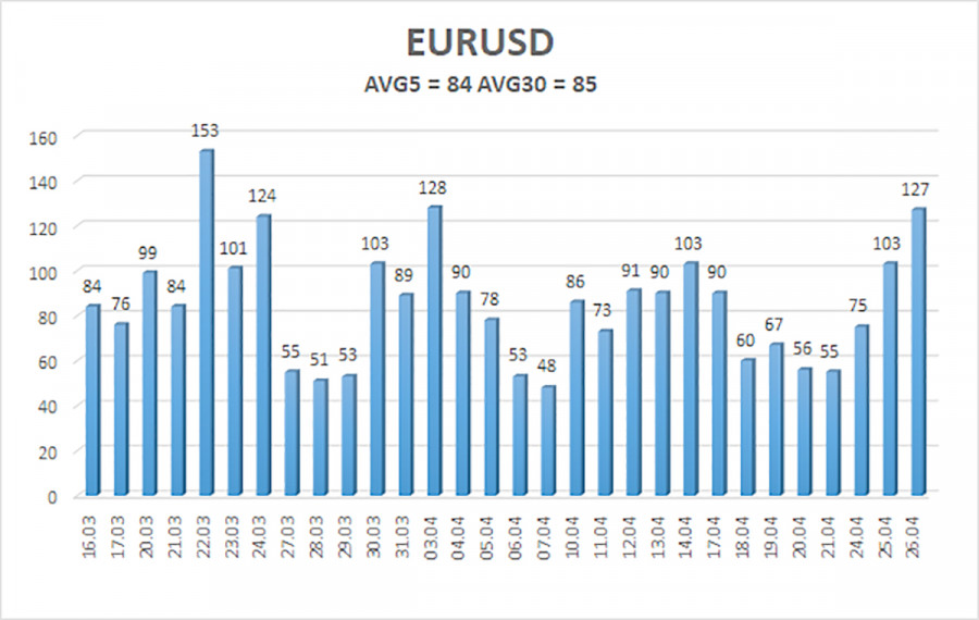 Обзор пары EUR/USD. 27 апреля. Хит-парад алогичности продолжается.ИнстаФорекс - Instaforex, 2 года назад Валютная пара EUR/USD в среду вновь показала виток восходящего движения. Честно говоря, в этом месте статьи должно было быть несколько плачущих от смеха смайликов. Днем ранее пара закрепилась ниже скользящей средней линии, индикатор CCI уже дважды заходил в область перекупленности(что случается крайне редко), оснований расти у евровалюты вчера не было ни одного. Но именно поэтому европейская валюта и выросла. Мы уже несколько недель почти каждый день говорим о нелогичности текущего движения. Вчерашний день можно считать апофеозом абсурда. В течение дня был опубликован только один отчет, заслуживающих внимания трейдеров. Заказы на товары долгосрочного использования в США оказались гораздо лучше прогнозных значений, однако доллар падал с самого утра, а после выхода отчета начал падать еще сильнее. И это все, что нужно знать о том, как рынок в данное время реагирует на любые новости и отчеты. Мы еще вчера говорили, что не считаем отчет по заказам важным, рынок доказал, что это действительно не так. Трейдеры продолжают либо трактовать любой отчет в пользу европейской валюты, либо просто игнорировать весь фундаментальный фон. Естественно, что такое положение вещей очень сильно осложняет процесс торговли. И, конечно, нельзя еще раз не отметить тот факт, что все сигналы на продажу можно смело игнорировать. Они просто не отрабатывают должным образов уже больше месяца. Закрепление ниже мувинга сейчас не значит абсолютно ничего. Даже не так, оно означает, что пара очень скоро возобновит восходящее движение. Другие сигналы на продажу ничем не лучше. Самое большое количество раз, которое мы видели, чтобы индикатор CCI заходил в область перекупленности прежде, чем начнется падение, три. Получается ждем третьего раза? Или в нашем случае будет поставлен новый рекорд? Одно очевидно, европейская валюта сильно перекуплена и рано или поздно рухнет вниз. Возможно, рынок ждет следующей недели, когда состоятся заседания ЕЦБ и ФРС. Возможно, рынок ждет пока крупные игроки начнут продавать. Инфляция в ЕС снизится до 2% через полтора года.Вчера состоялось очередное важное и бессмысленное для рынка выступление представителя ЕЦБ. Председатель ЦБ Франции и один из членов монетарного комитета ЕЦБ Франсуа Виллеруа де Гало заявил, что инфляция, скорее всего, снизится к целевому уровню к концу 2024 года. Он отметил, что недавно был пройден пик инфляции, а инфляция на продукты питания начнет снижаться во второй половине текущего года. Напомним, что головной болью европейского регулятора является уже не инфляция, а базовая инфляция. Основной показатель потребительских цен худо-бедно снижается от месяца к месяцу, а иногда даже делает это очень быстро(как в марте). А вот базовая инфляция еще не снизилась ни разу. Впрочем, для европейской валюты, трейдеров эта информация не имеет никакой ценности. Что можно предпринять в связи с этими данными? Ничего. Уже на следующей неделе мы узнаем, насколько поднимет ставку ЕЦБ. Рынок по-прежнему колеблется между 0,25% и 0,5%. Мы склоняемся к первому варианту, как и большинство опрошенных Bloomberg экономистов. Тем не менее, сюрпризы возможны. Мы считаем, что любые наиболее «ястребиные» сценарии уже по несколько раз были учтены в текущем курсе пары. 